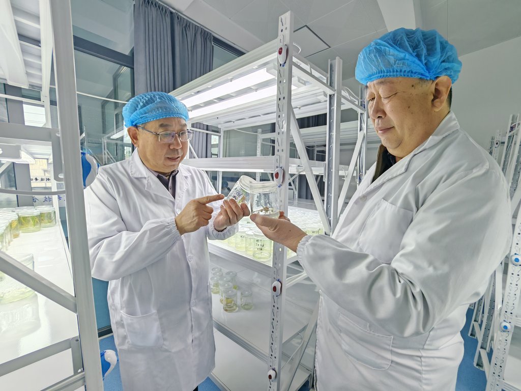 3月18日,河北众人信农业科技有限责任公司科研人员正在查看麦种发芽情况。河北日报记者苑立立摄