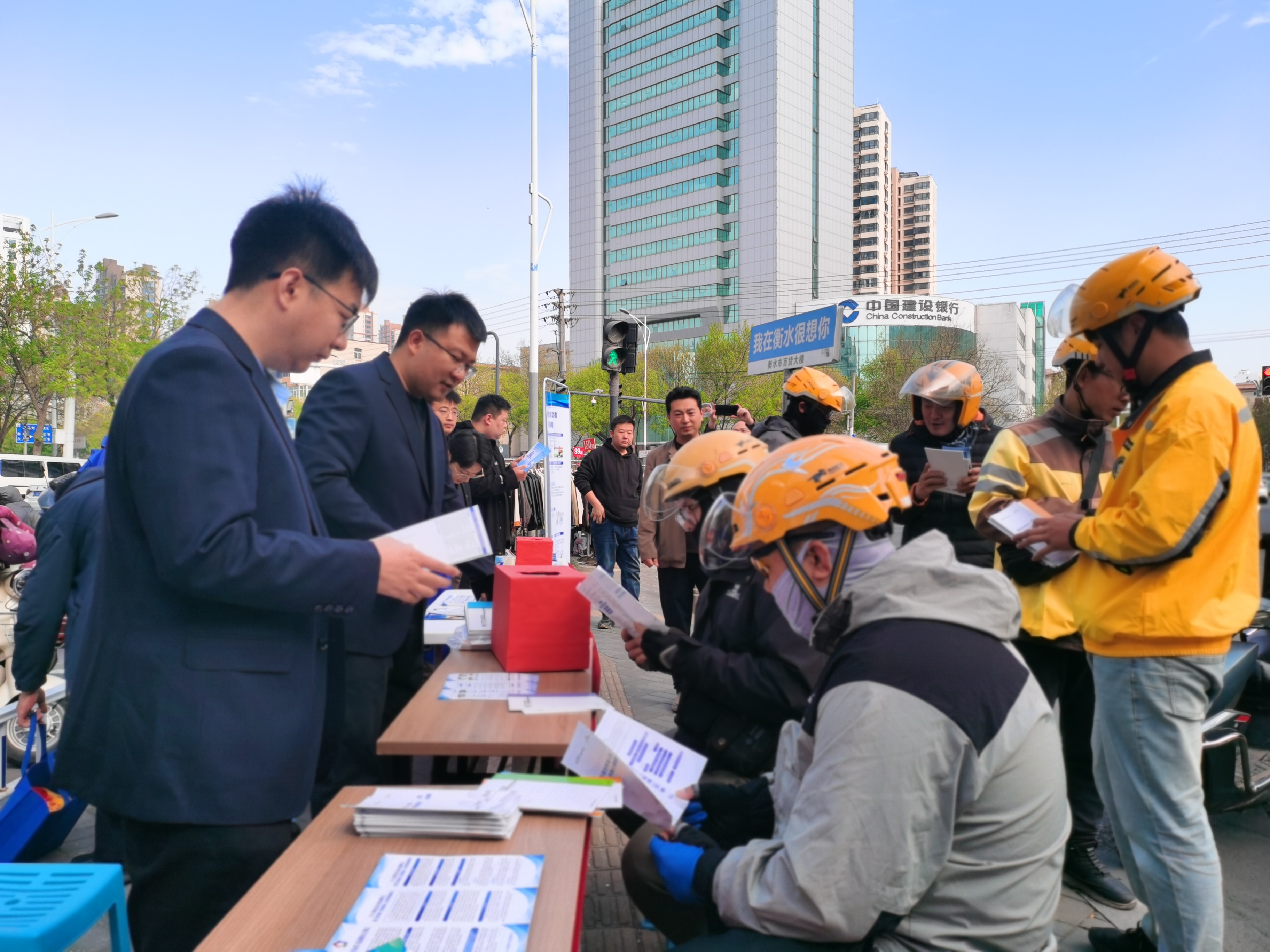 4月8日上午,衡水市人力资源和社会保障局在衡百大楼附近开展职业伤害保障宣传活动,普及职业伤害保障政策,维护新就业形态劳动者合法权益。