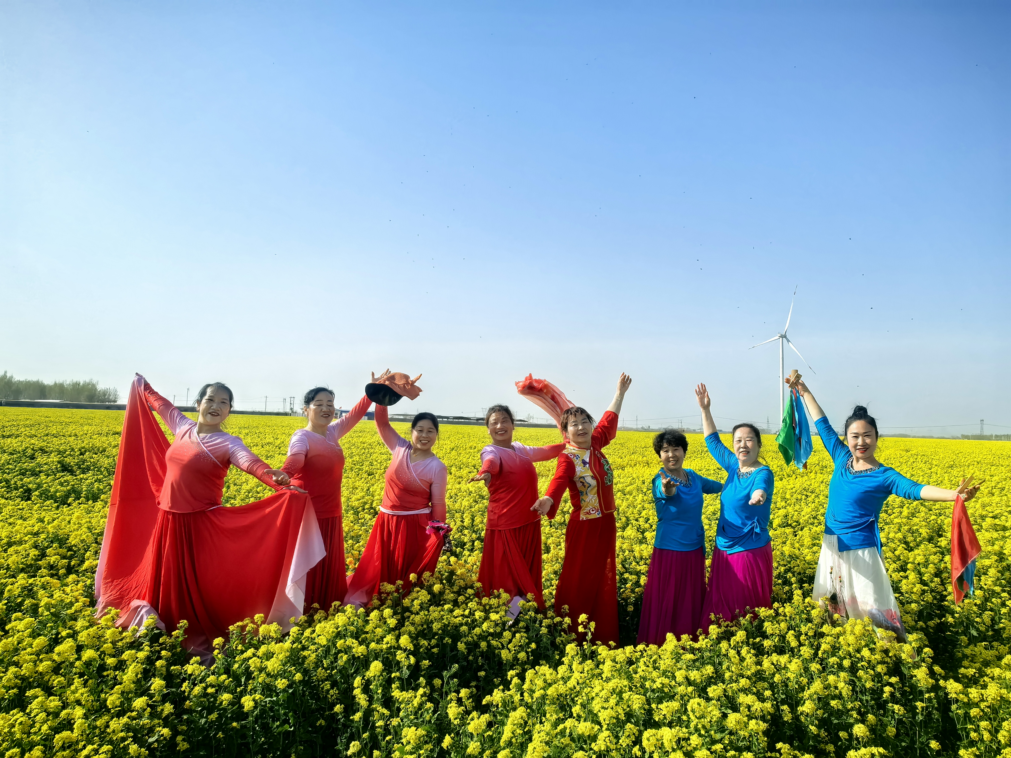 就在几天前,五位村支书在这里拍摄了一条视频。视频里,北代镇西堤村、东堤村、韩庄村和东孙庄镇合立村、西王庄村的五位村党支部书记,脱下平日里的严肃“外套”,伴随着欢快的音乐,在花田间跳起了舞。他们动作或许不够专业,甚至有些笨拙,但每个人脸上洋溢的真诚笑容,比身后的油菜花还要灿烂。