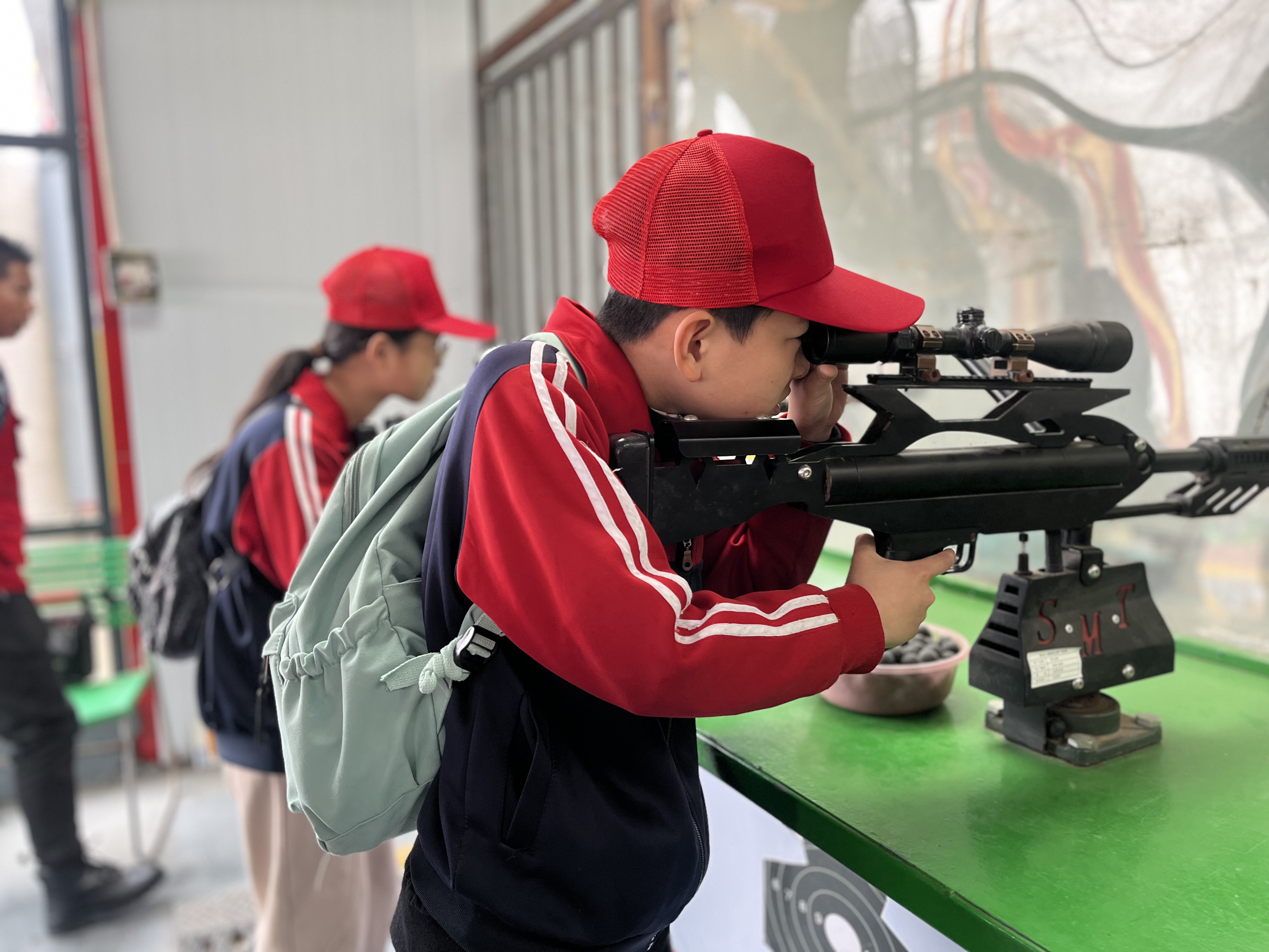 除了艺术体验,此次研学还设置了趣味射击体验课程。在专业指导和安全保障下,孩子们参与了模拟射击、定点瞄准、趣味打靶等沉浸式活动。通过规范站姿、调整呼吸、精准瞄准等环节,孩子们的专注力、手眼协调能力、自我控制力和抗压能力得到了充分锻炼,更在挑战中培养了冷静沉着、勇敢自信、敢于拼搏的优良品质。