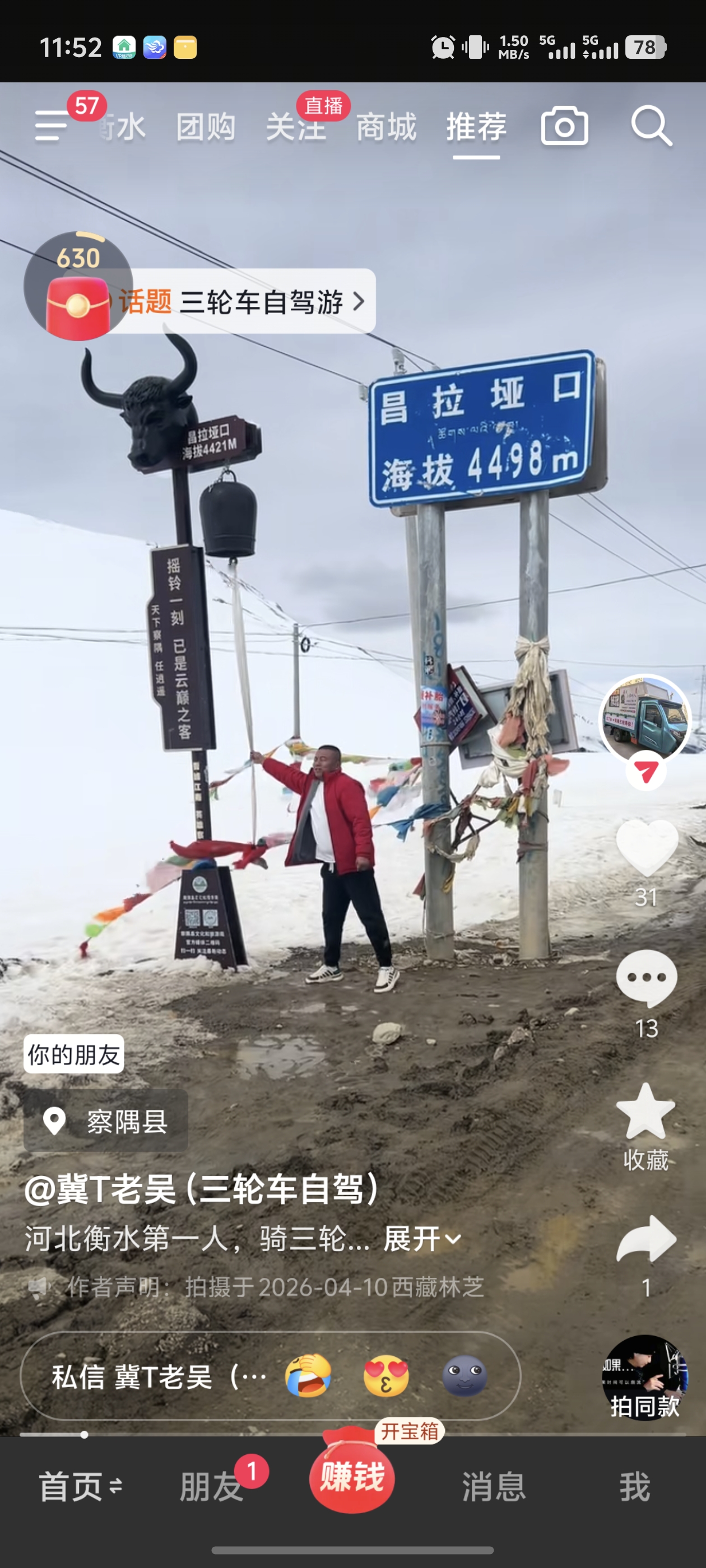 一辆三轮车,一万余里漫漫长路,从衡水到西藏,衡水滨湖新区吴杜村的吴振兴,网名“冀T老吴”,开启了一场独属于普通人的追梦之旅。他的行程通过网络分享,让万余名网友共同见证这段热血征程,他揣着梦想上路,在曲折中坚守,在风雨中前行,于一路艰辛里收获温暖,在丈量山河时传递乡情,用最朴素的方式,书写了一段平凡人奔赴河山的动人故事。