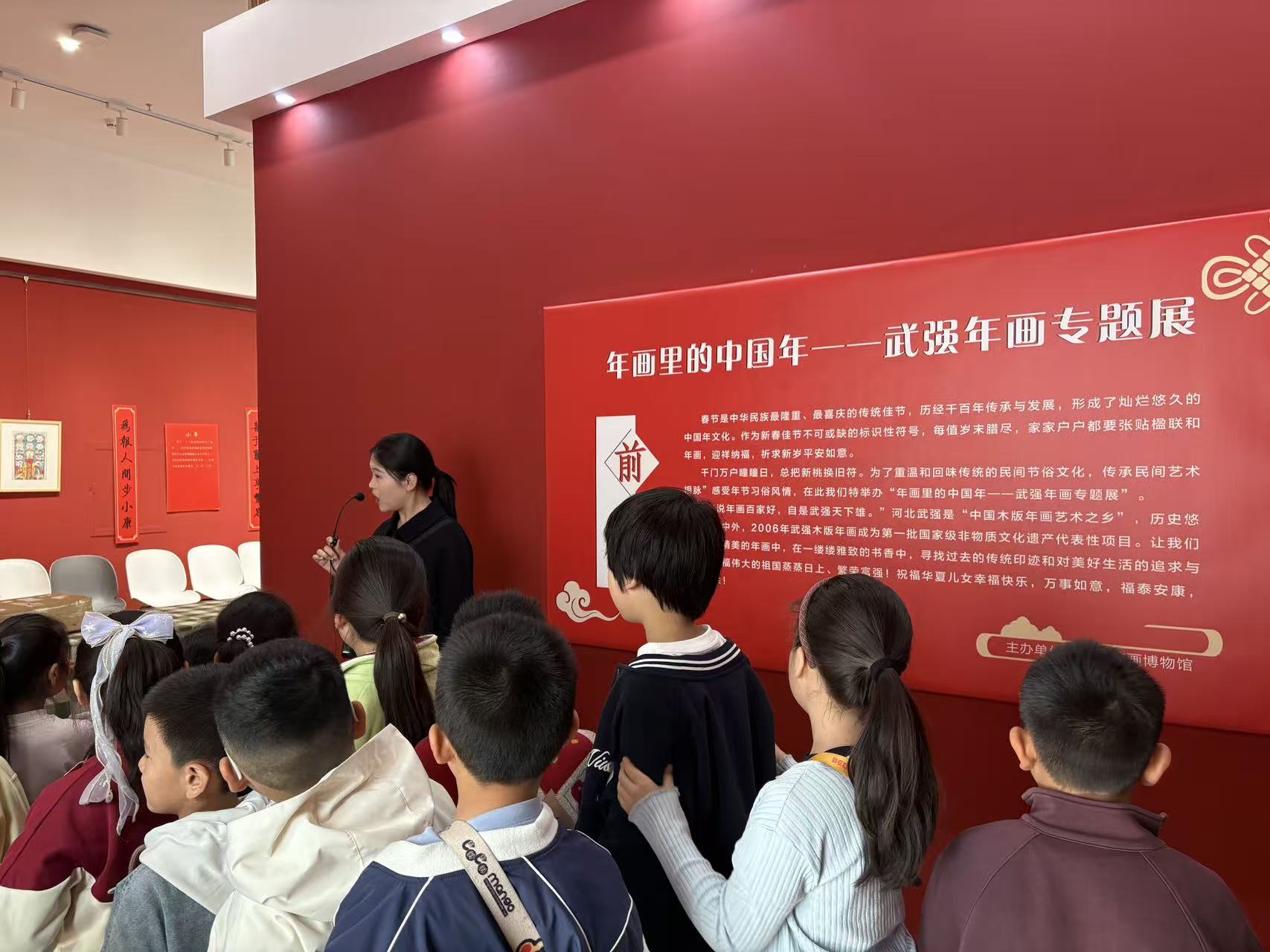 活动中,孩子们在博物馆内认真参观,聆听讲解员讲述武强年画的历史渊源、文化内涵与艺术特色,仔细观赏一幅幅色彩鲜艳、寓意吉祥的年画作品,感受传统民俗艺术的独特韵味。