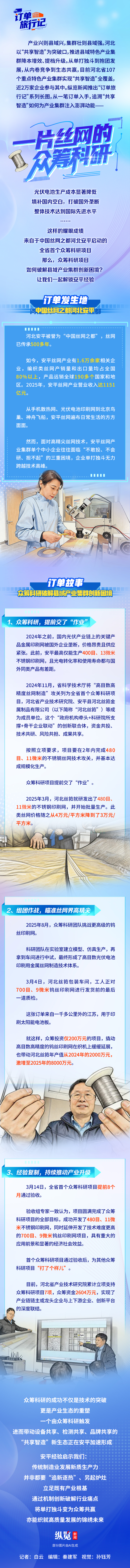 编辑:姜长淼 来源:河北新闻网 原标题:订单旅行记·长图|一片丝网的众筹科研 点赞 +1 微博 微信 我要评论 发布 相关推荐 手把手教反诈 拉网式查毒源 枣强县委社会工作部组织各社区开展禁毒与反诈骗宣传 衡水速览 9小时前 承德:构建便捷交通网 铺就惠民幸福路 关注 2天前 衡水市开展“美丽衡水我推荐”创作者交流会暨“网络名人看衡水”网络主题活动 衡水速览 3天前 京津冀协同发展12年|深化源网荷储协同 助推能源低碳转型 关注 4天前 订单旅行记②|一片丝网的众筹科研 关注 5天前 北京社保经办业务将实现在雄安一网通办 关注 5天前 热门 一天 三天 一周 1 5月1日起 衡水市全面放开住房消费类公积金提取频次 2 5月1日起衡水市全面放开住房消费类公积金提取频次 多子女家庭贷款政策同步调整 3 衡水桃城区:智能农机助春管 麦田管护提质增效 4 衡水市第三人民医院开展2026年全民国家安全教育日宣传教育活动 5 衡水今年将为1100余名残疾儿童提供康复救助 6 衡水市交通运输行业党委为新就业群体打造口腔义诊活动 7 故城县亲子嘉年华激活乡村阅读新生态 8 饺子飘香传关爱 敬老助老暖乡村 安平县东白驼罗村这场活动暖到老人心坎里 9 潮启桃城 创意筑梦! -衡水世茂52+携手衡水学院美术学院启幕IP大赛暨校企合作签约仪式 10 武邑圈头乡:“五位一体”赋能产业 党建领航振兴新程 1 衡水市举办0—6岁儿童孤独症筛查培训班 2 第二十一届京津冀开发区“枣复材杯”乒乓球邀请赛暨招商引资推介会在枣强举行 3 “迁徙有信·文脉有声”衡水湖生态摄影大赛颁奖暨赏花季采风活动圆满举行 4 新华社评论员:为两岸谋和平 为同胞谋福祉 为民族谋复兴 5 45幅佳作定格美好! 衡水“群众影像”展带你看见凡人烟火 6 衡水滏阳河管理中心:亲近自然 文明露营 共同守护河畔美景 7 衡水开放大学2026年春季招生即将结束 8 阜城县古城镇聚力推广“五位一体”托管模式 激活集体经济发展动能 9 河北省委常委会召开扩大会议 10 春管正当时 安平多措并举守护冬小麦生长 1 衡水市2026年中考开始报名 2 侯店毛笔:一管承传古韵 四海翰墨飘香——我市文化建设走笔之六 3 衡水推出10条休闲农业与乡村旅游精品线路 4 “河北福嫂”进京津 5 衡水桃城区:擦亮“河北福嫂”金招牌 架起就业暖心桥 6 河北衡水:宝云公园繁花盛放 踏青赏花游人如织 7 衡水市桃城区城东社区开展“重走长征路”主题活动 厚植青少年爱国情怀 8 阜城县大白乡人居环境整治“春季攻势”全面发力 9 【新闻发布】 解读政策 助力发展 衡水市税务系统开展税收普法宣传系列活动 10 清明假期 衡水消费市场活跃有序 广告 广告 广告 24小时 1 阜城县古城镇:人居整治 “大拉练” 乡村治理 “加速度” 2 故城交通多点发力防控大气污染 3 独家视频丨习近平会见西班牙首相桑切斯:共同捍卫真正的多边主义 守护全球和平与发展 4 独家视频丨习近平:打造更加稳固坚韧、富有活力的中阿全面战略伙伴关系 5 零碳引领 绿色同行 衡水市“一起益企 订单式服务”绿色低碳发展 专题活动成功举办 6 河北衡水:全民健身 燃动湖城 系列⑥——非遗戳脚助健身 传承实践暖湖城 7 河北衡水:全民健身 燃动湖城 系列⑦——春风伴骑行 活力满湖城 8 踏青正当时 蜱虫防护别松懈 衡水市疾控中心发布蜱虫防护提示 9 行庆传温情 服务践初心——张家口银行衡水饶阳支行暖心帮扶高龄老人获赞誉 10 武邑籍北京声乐老师为衡水建市30年谱写赞歌