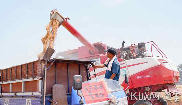 2025年6月9日,辛集市马兰农场农机手操作收割机将收获的小麦装车。长城网·冀云客户端记者 魏闪 摄