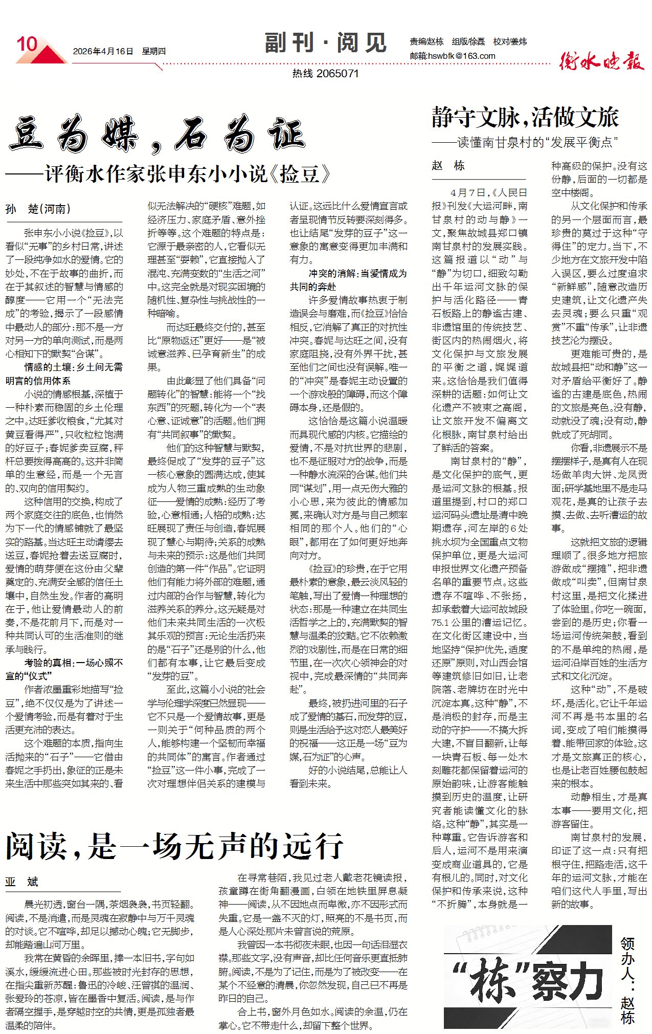 4月7日,《人民日报》刊发《大运河畔,南甘泉村的动与静》一文,聚焦故城县郑口镇南甘泉村的发展实践。这篇报道以“动”与“静”为切口,细致勾勒出千年运河文脉的保护与活化路径——青石板路上的静谧古建、非遗馆里的传统技艺、街区内的热闹烟火,将文化保护与文旅发展的平衡之道,娓娓道来。这恰恰是我们值得深耕的话题:如何让文化遗产不被束之高阁,让文旅开发不偏离文化根脉,南甘泉村给出了鲜活的答案。