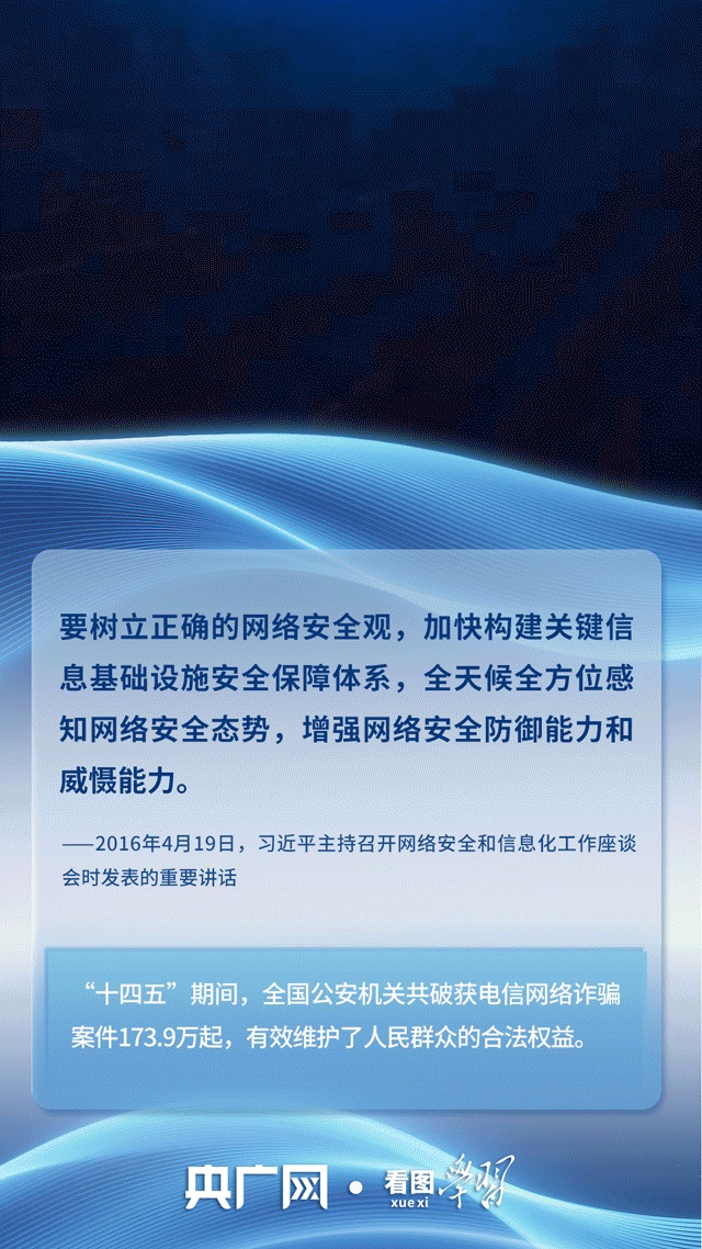今年4月15日是第十一个全民国家安全教育日。在习近平总书记主持召开网络安全和信息化工作座谈会并发表重要讲话十周年之际,《看图学习》邀您一同学习领会,携手筑牢网络安全和数据安全防线!