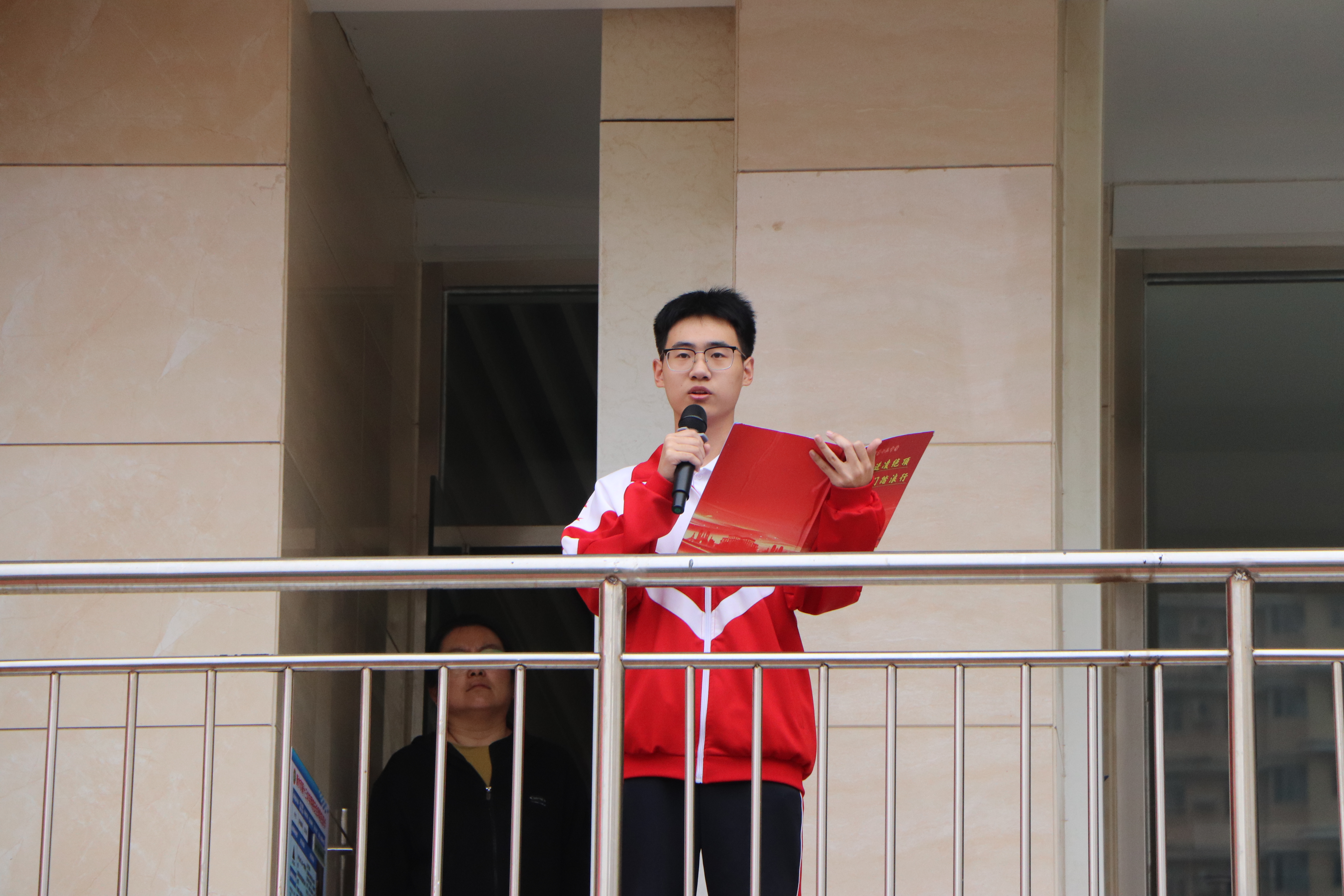 雄壮国歌声中,五星红旗冉冉升起,全体师生肃立注目,赤诚家国情怀激荡心间。学生代表张宏腾以铿锵誓言表达青春决心:“我们将以脚步丈量信念,以坚持诠释担当,以团结凝聚力量,不负青春、不负韶华、不负学校培养!”
