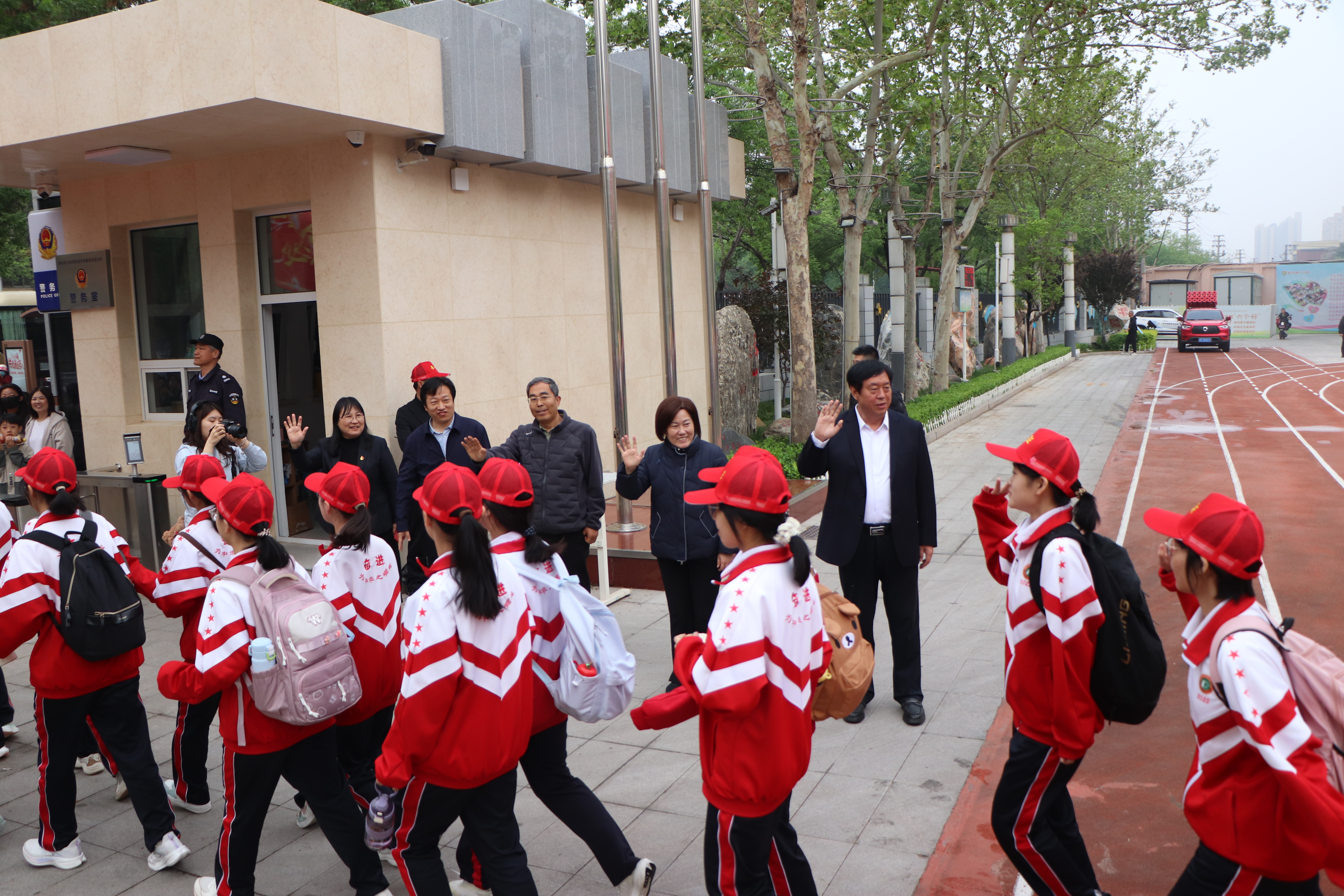 一路上,交警部门全程保驾护航,在路口疏导交通、守护平安。同学们自觉遵守交通规则,主动向执勤交警鞠躬问好、真诚致谢,文明有礼、尊师敬岗的素养,展现十三中学子良好精神风貌。部分学生家长自发加入后勤补给队伍,携带饮用水、应急物资全程守候,为孩子们送上温暖与力量,家校同心、携手护航,为远足增添浓浓温情。
