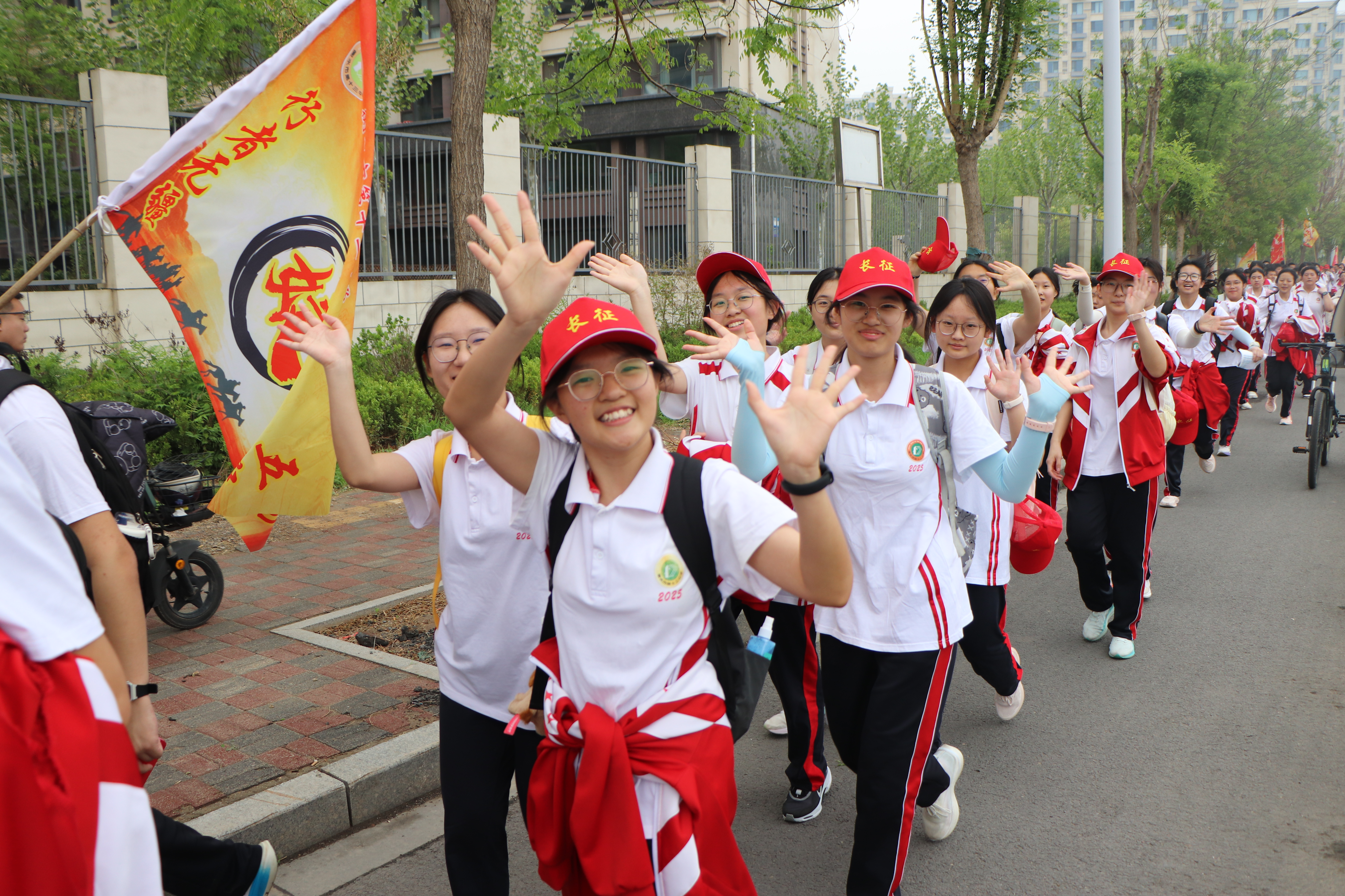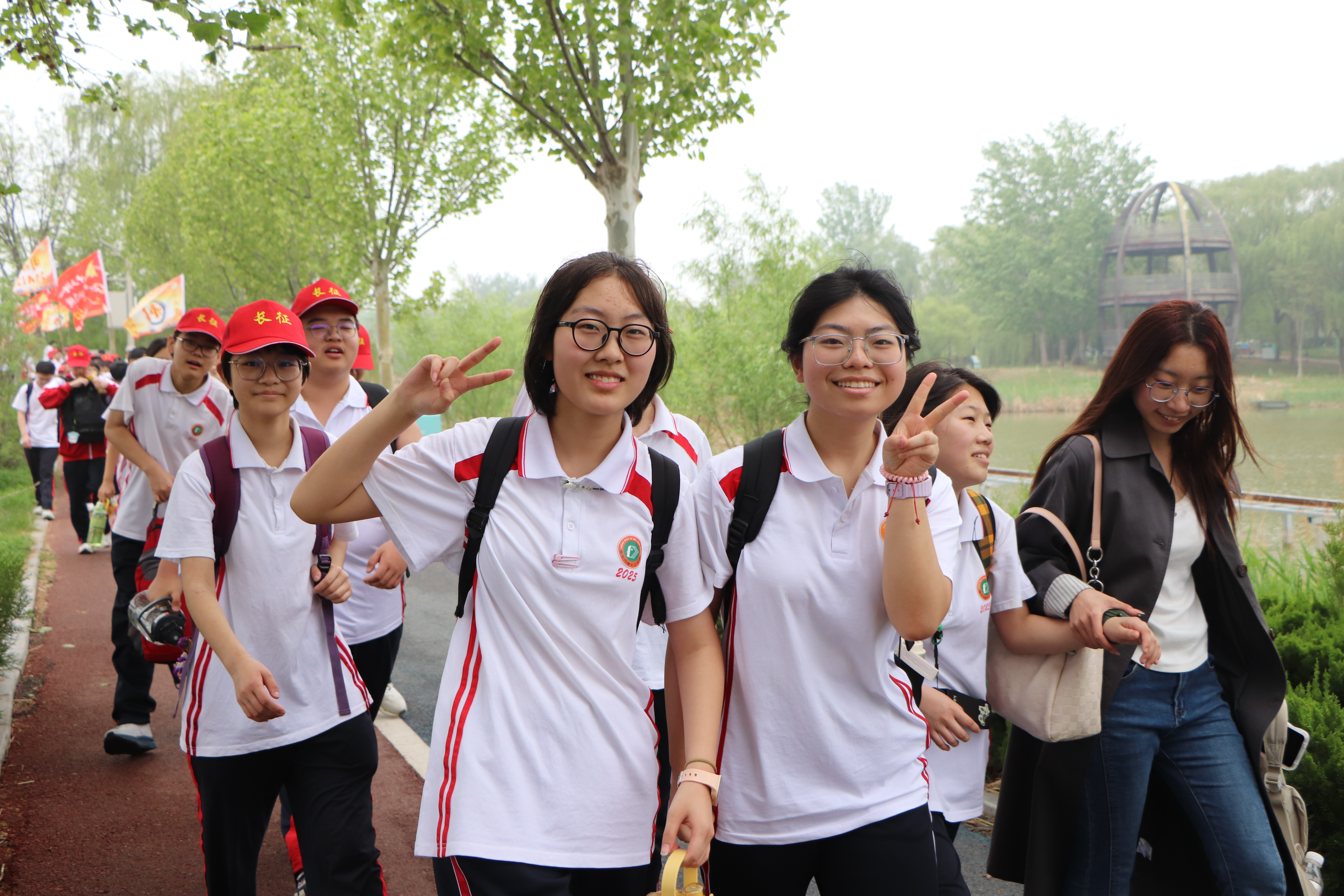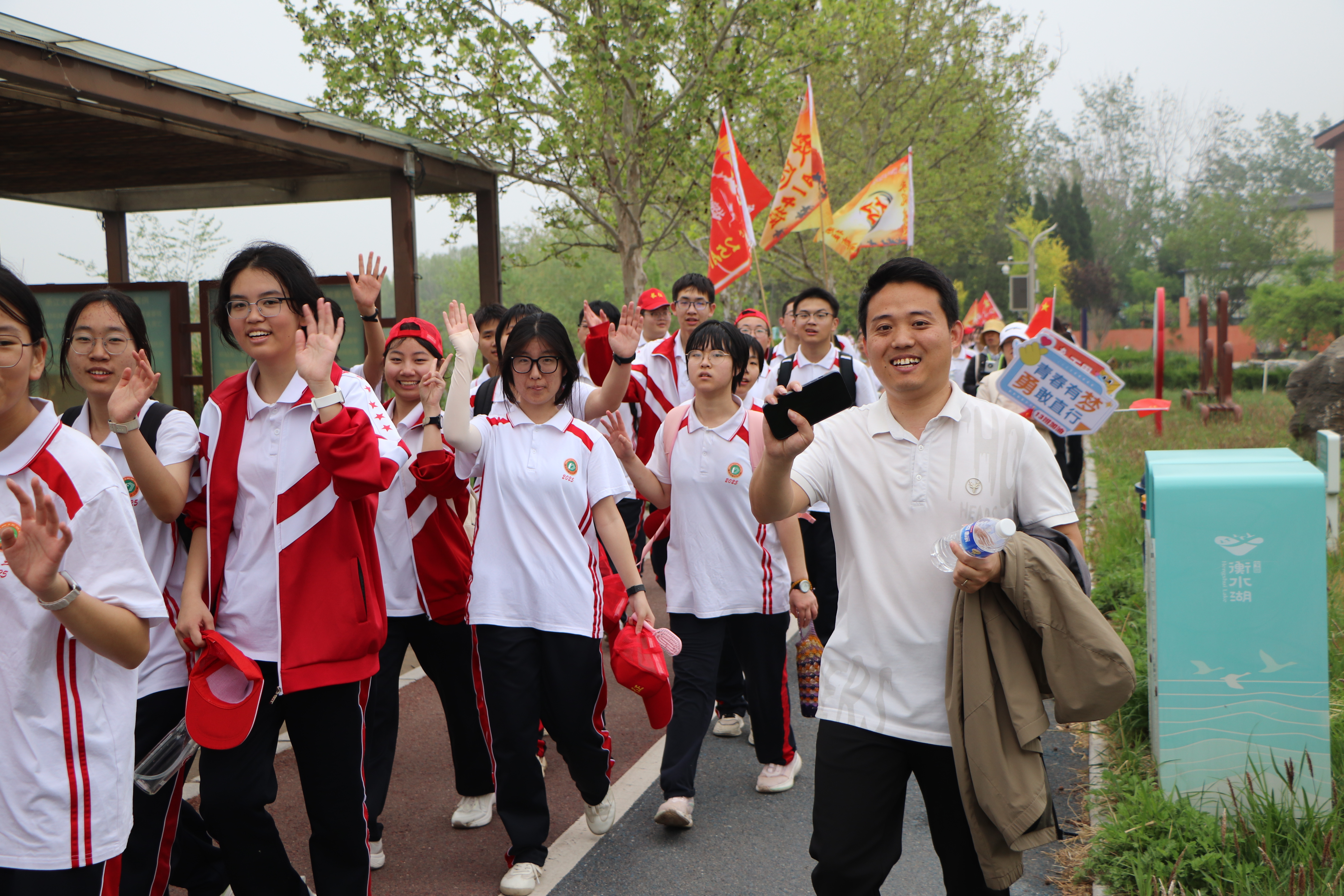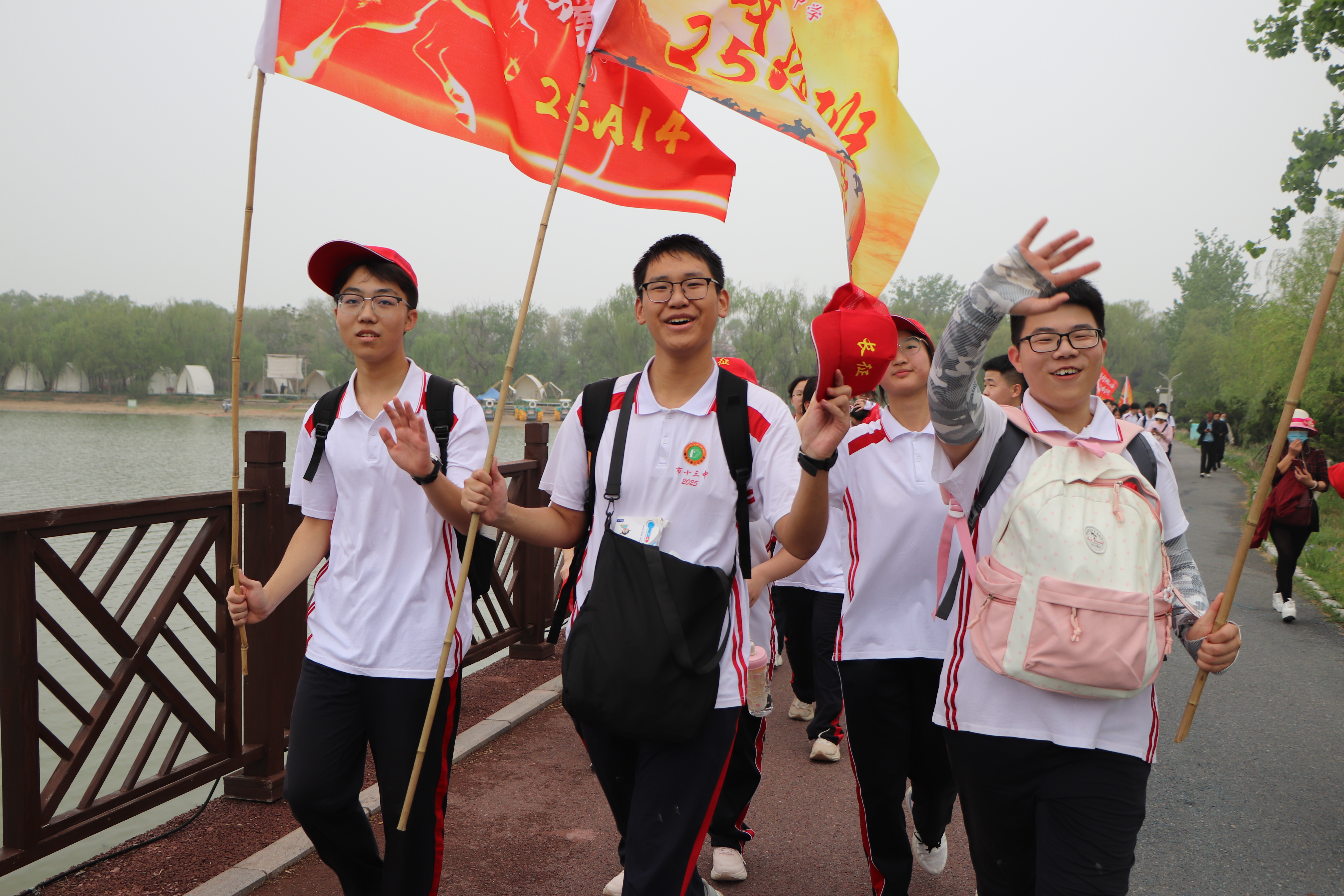 春风浩荡满目新,扬帆奋进正当时。4 月 17 日,衡水市第十三中学第十六届“策马奋进启新程 激潜励志谱华章”远足活动圆满举行。高一年级全体师生沐晨光、踏春风,跨滏阳河,经大地花海、衡水湖一路前行,在园博园绽放青春风采,于数十里往返征程中淬炼体魄、磨砺意志。恰逢长征胜利九十周年,这场远足既是一场热爱家乡、亲近自然的生态之行,一次团结互助、挑战极限的成长之约,更是一堂浸润激潜教育、传承红色基因、践行“奋进——为中华之崛起”校训的行走思政大课。