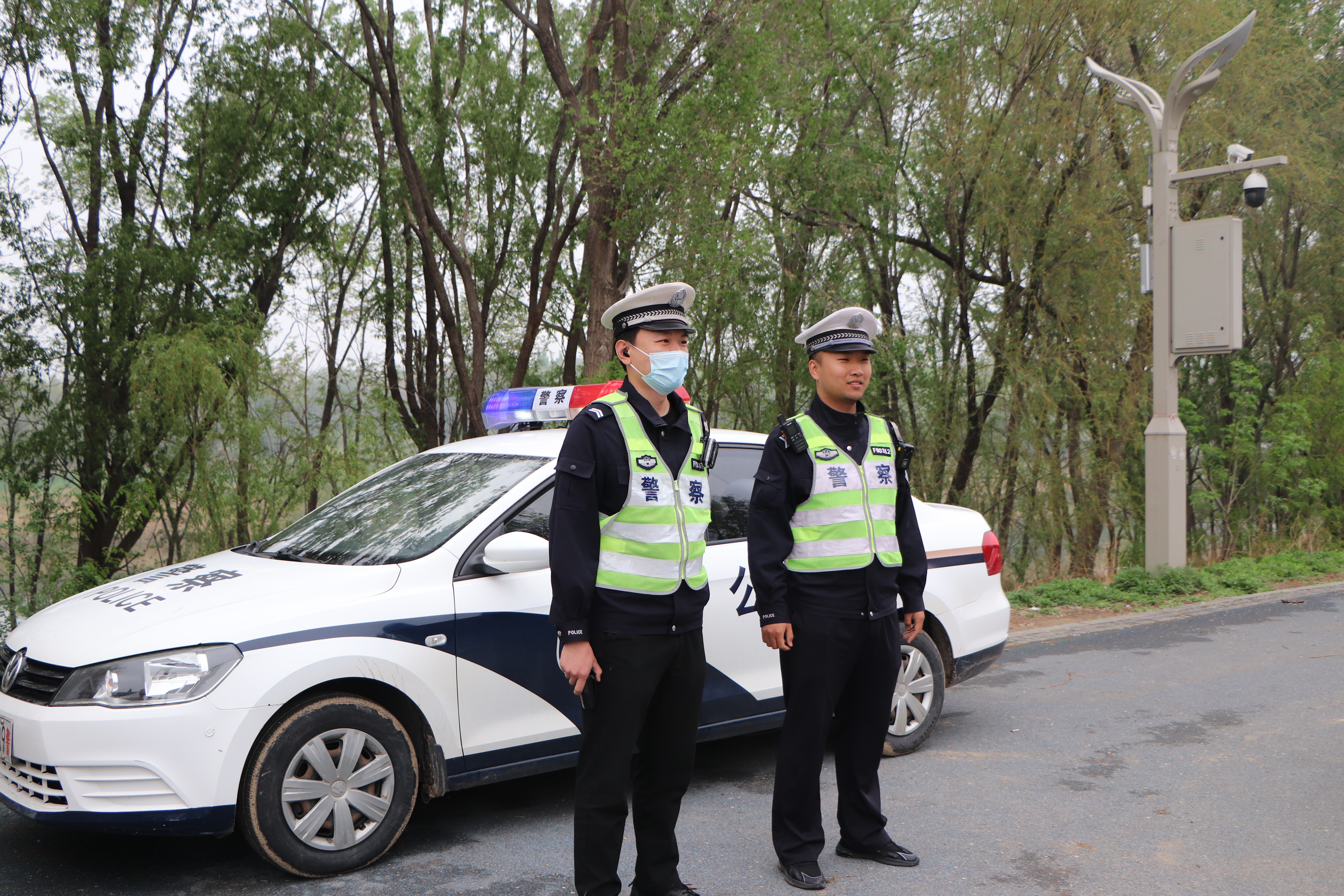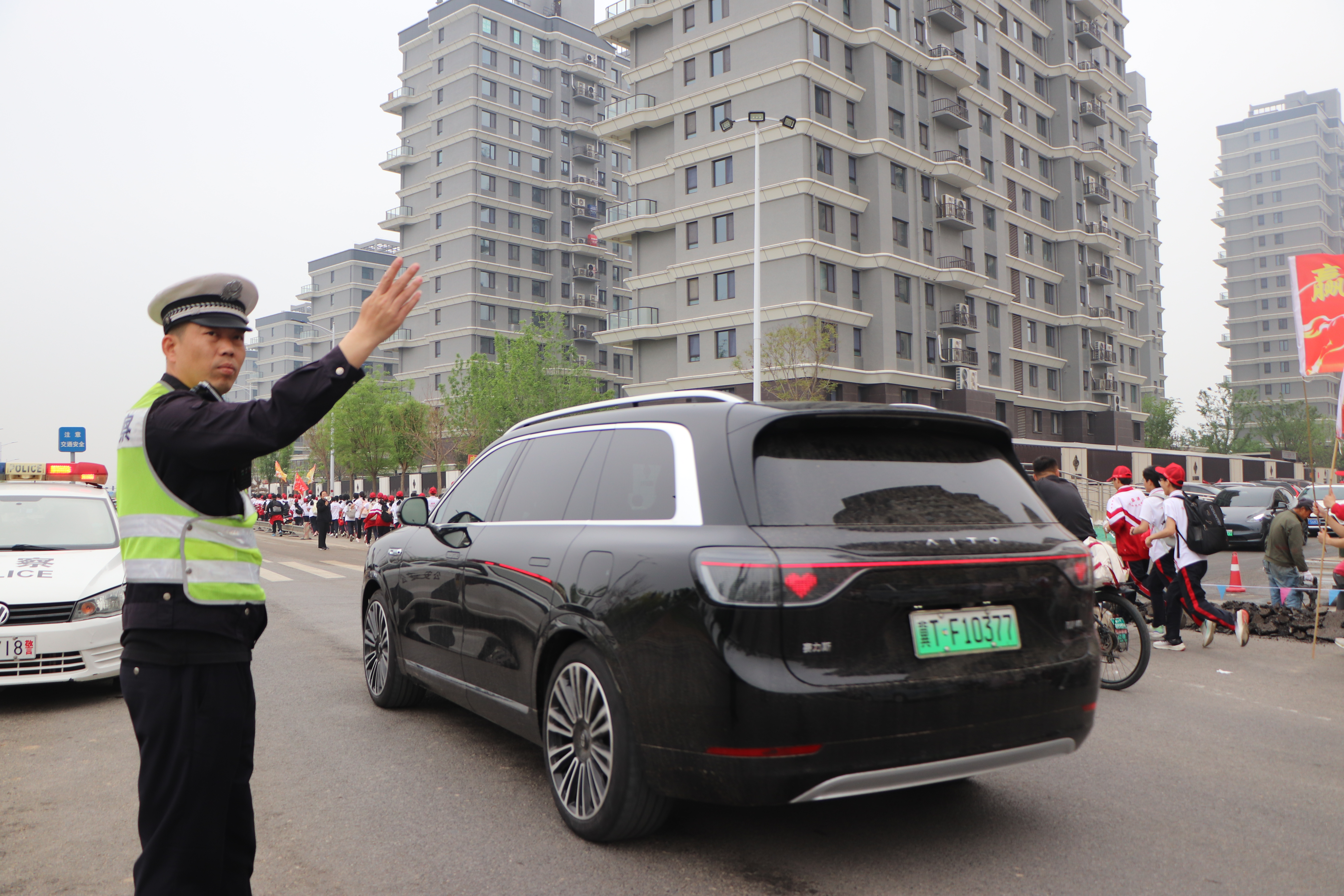 交警为十三中学子保驾护航。