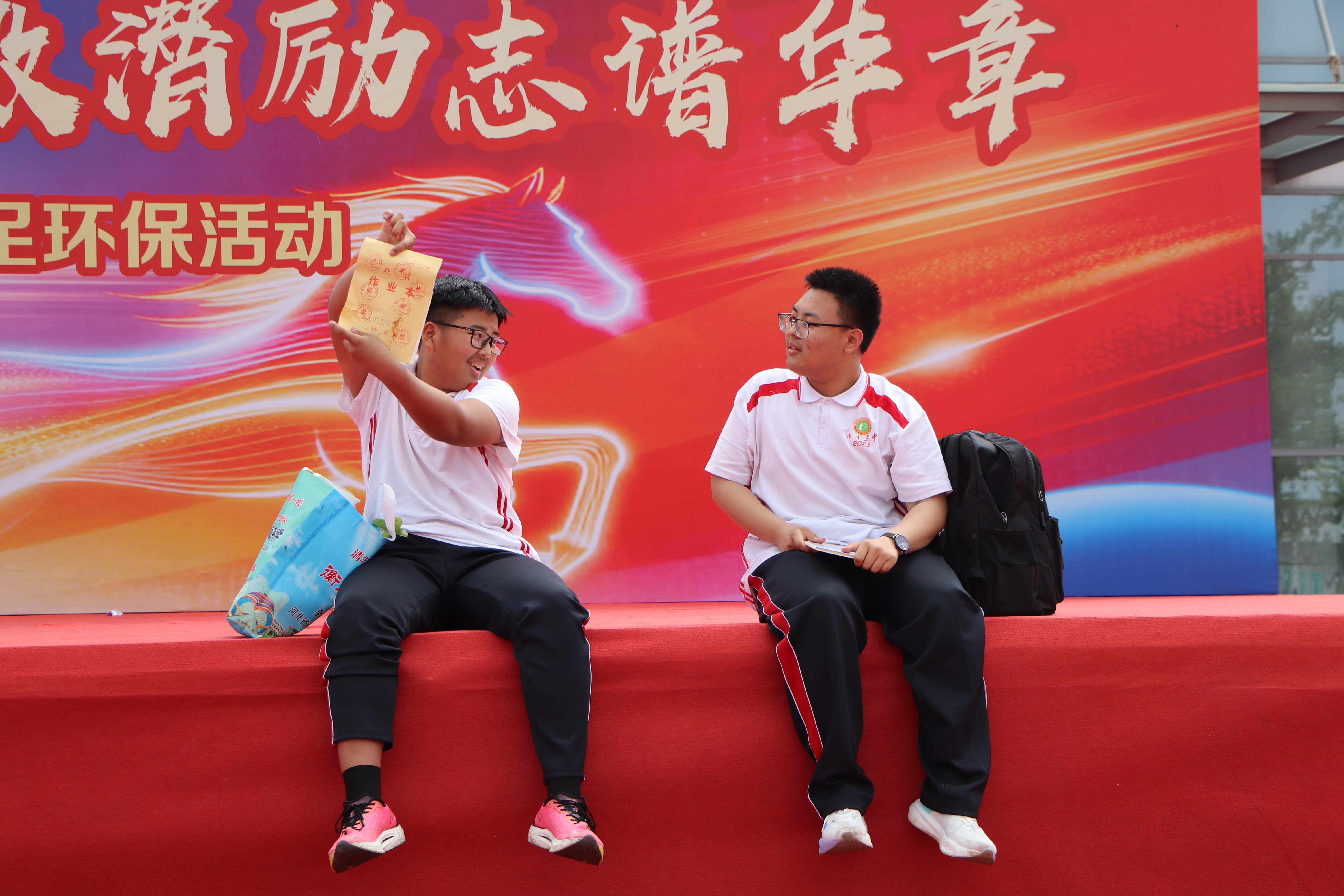 文艺汇演后,十三中学子仔细清理现场。