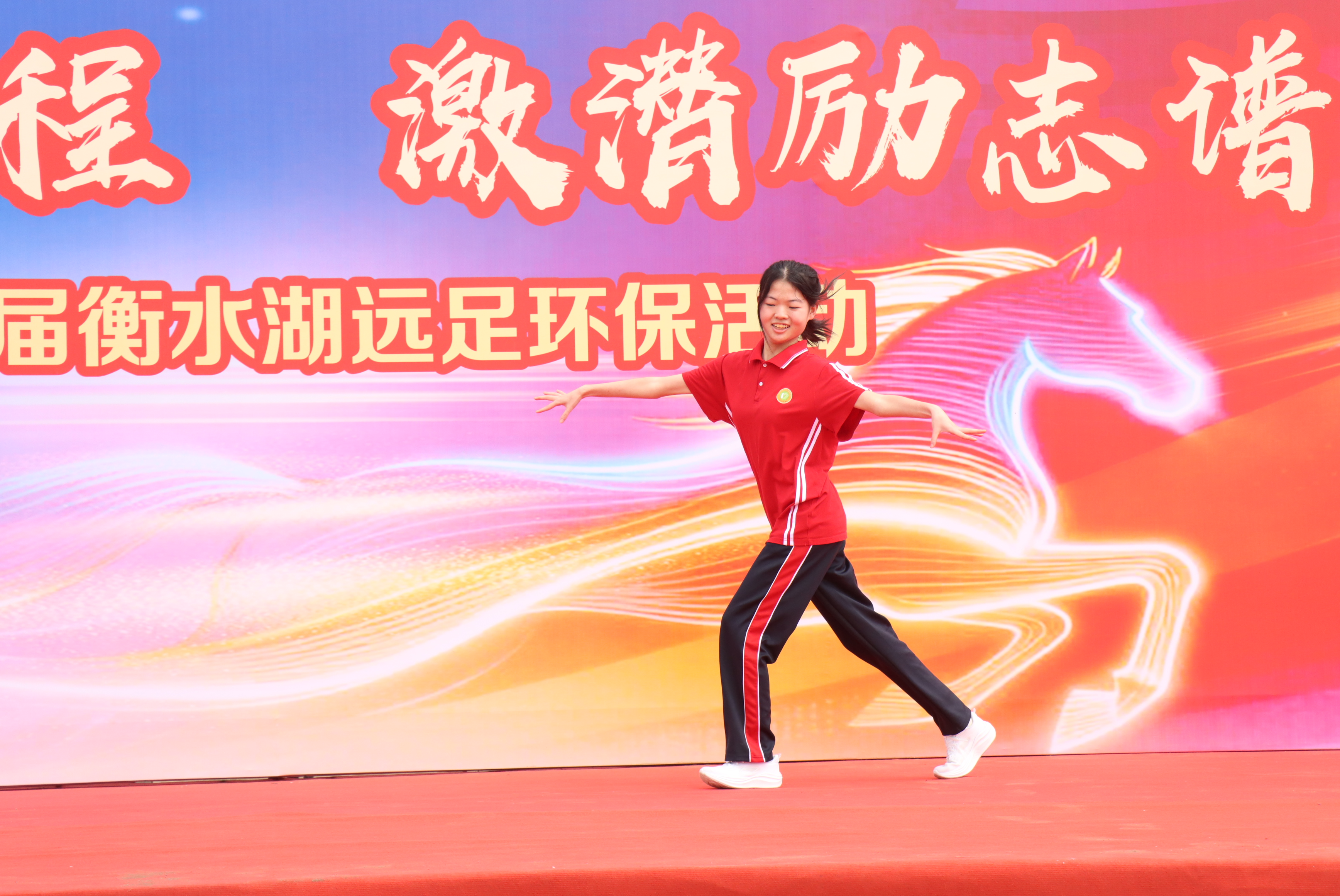 历经3个多小时的跋涉,远足队伍顺利抵达园博园,在衡水历史文化生态研学馆前,一场充满青春活力与正能量的文艺汇报演出热烈启幕。