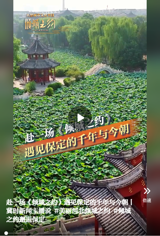 视频来源:https://web.cmc.hebtv.com/cms/rmt0336_html/19/19js/dsp/12291758.shtml编辑:贾扬阳 来源:冀时新闻 原标题:赴一场《倾城之约》遇见保定的千年与今朝丨冀时新闻主播说 点赞 +1 微博 微信 我要评论 发布 相关推荐 倾城之约|一分钟带你了解唐山工业简史 关注 6天前 记者VLOG丨来滦平,与杏花、长城共赴一场春日之约 关注 04-06 倾城之约|白洋淀的秘密武器:雄安监测1号船 关注 03-30 《倾城之约》雄安篇 见证千年大计的时代答卷丨冀时新闻主播说 关注 03-29 未来之城有多惊艳?来雄安,赴一场倾城之约! 关注 03-29 《倾城之约》| 解锁未来之城,感受雄安硬核科技 关注 03-28 多国专家共赴“长城之约” 搭建文化遗产保护交流平台 关注 2025-11-17 热门 一天 三天 一周 1 2026年京津冀“衡实杯”马术赛完赛 2 激潜逐梦踏春行 青春奋进新征程 ——衡水十三中第十六届远足活动圆满举行 3 【讲习所·中国与世界】“构建网络空间命运共同体”成为全球互联网治理的重要思想坐标 4 衡水市冀州区开展“阅见书香之美 共筑阅读之城”春季书香节主题活动 5 人民之心|“把人民放在心中最高位置” 6 镜观·回响|与古为新 文脉绵长 7 【新思想引领新征程】推进数字中国建设 打造高质量发展新引擎 8 书香润乡土 诵读颂春天 安平县“4·23 世界读书日”朗诵音乐会点亮乡村文化夜 9 衡水市2026年新时代乡村阅读启动仪式在武邑举办 书香赋能乡村振兴 10 总书记的关切·落地的回响|中国式现代化要靠科技现代化作支撑 1 看图学习|筑牢网络安全和数据安全防线 总书记关心的“网事” 2 姚黄魏紫初绽蕊 满园春色惹人醉 衡水中华公园牡丹花开了 3 百余件(套)冀派内画精品走进甘肃瓜州 4 千年塔下诵经典! 衡水市景县举办世界读书日主题活动 5 “星火照初心·笔墨传精神”创作采风系列活动在衡水市安平县启动 6 衡水市药品不良反应监测中心获全国通报表扬 7 花田里的“金色突围”——探寻安平杨屯油菜花全产业链密钥 8 为构建具有战略意义的中越命运共同体凝聚青春力量 9 河北故城:启动“护苗·绿书签”行动 书香校园里播撒“绿色”种子 10 衡水德州市场监管联动 优化外资营商环境 1 “妈妈你在哪儿” 衡水刘风旭寻找走失18年的母亲盼团圆 2 “武邑红梨”牵手“硬木雕刻” 双IP联动助推农文旅融合与产业升级 3 《互联网平台价格行为规则》正式实施 明确禁止“大数据杀熟” 4 春管正当时 安平多措并举守护冬小麦生长 5 阜城县古城镇聚力推广“五位一体”托管模式 激活集体经济发展动能 6 零碳引领 绿色同行 衡水市“一起益企 订单式服务”绿色低碳发展 专题活动成功举办 7 武邑籍北京声乐老师为衡水建市30周年谱写赞歌 8 孙犁故里:“一荷”文风传世 满卷书香致远——我市文化建设走笔之八 9 武强年画博物馆举办“年画映纸鸢 春风入画来”主题研学活动 10 每周2列 今日起冀疆班列纳入全国铁路运行图 广告 广告 广告 24小时 1 看赵子龙穿越千年重返正定,向您发出邀约:同擂常山战鼓~ 2 赴一场《倾城之约》遇见保定的千年与今朝丨冀时新闻主播说 3 聚焦“固链、强链、补链、延链” 河北省实施电子信息产业链攻坚行动 4 人民之心·总书记谈政绩观①丨一词一观:为人民 5 【新思想引领新征程】推进数字中国建设 打造高质量发展新引擎 6 衡水市冀州区开展“阅见书香之美 共筑阅读之城”春季书香节主题活动 7 衡水市原创歌曲优秀作品展演在安平杨屯唱响 8 书香润乡土 诵读颂春天 安平县“4·23 世界读书日”朗诵音乐会点亮乡村文化夜 9 衡水市2026年新时代乡村阅读启动仪式在武邑举办 书香赋能乡村振兴 10 【讲习所·中国与世界】“构建网络空间命运共同体”成为全球互联网治理的重要思想坐标