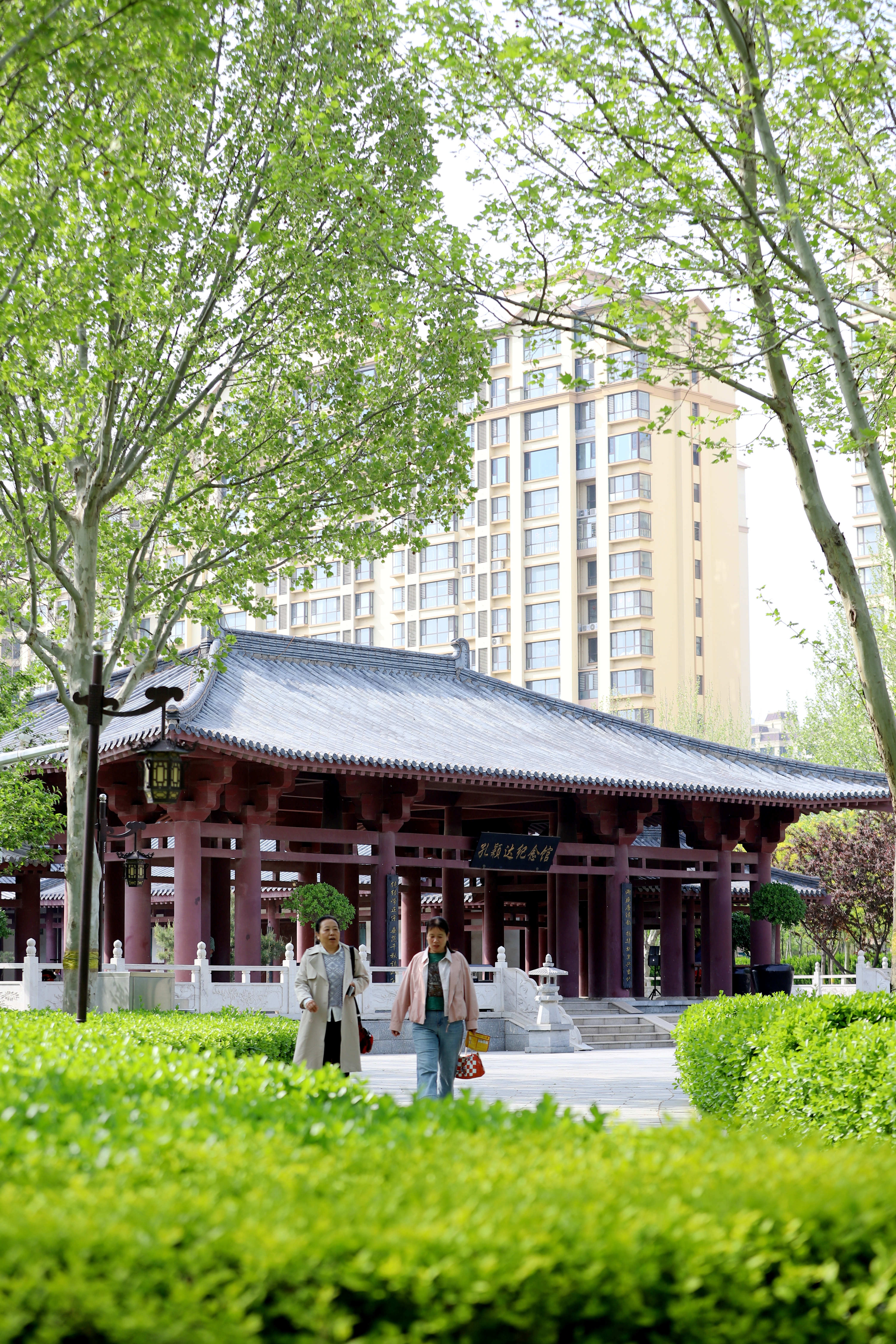 这座融自然生态与儒家文化于一体的三星级公园,绿地率超 70%。园内碧桃绽艳、垂柳依依,老人们在亲水景观区散步闲谈,孩子们在游乐区嬉戏玩耍,市民或驻足观赏特色树洞画,或漫步五经主题分区感受儒风古韵。