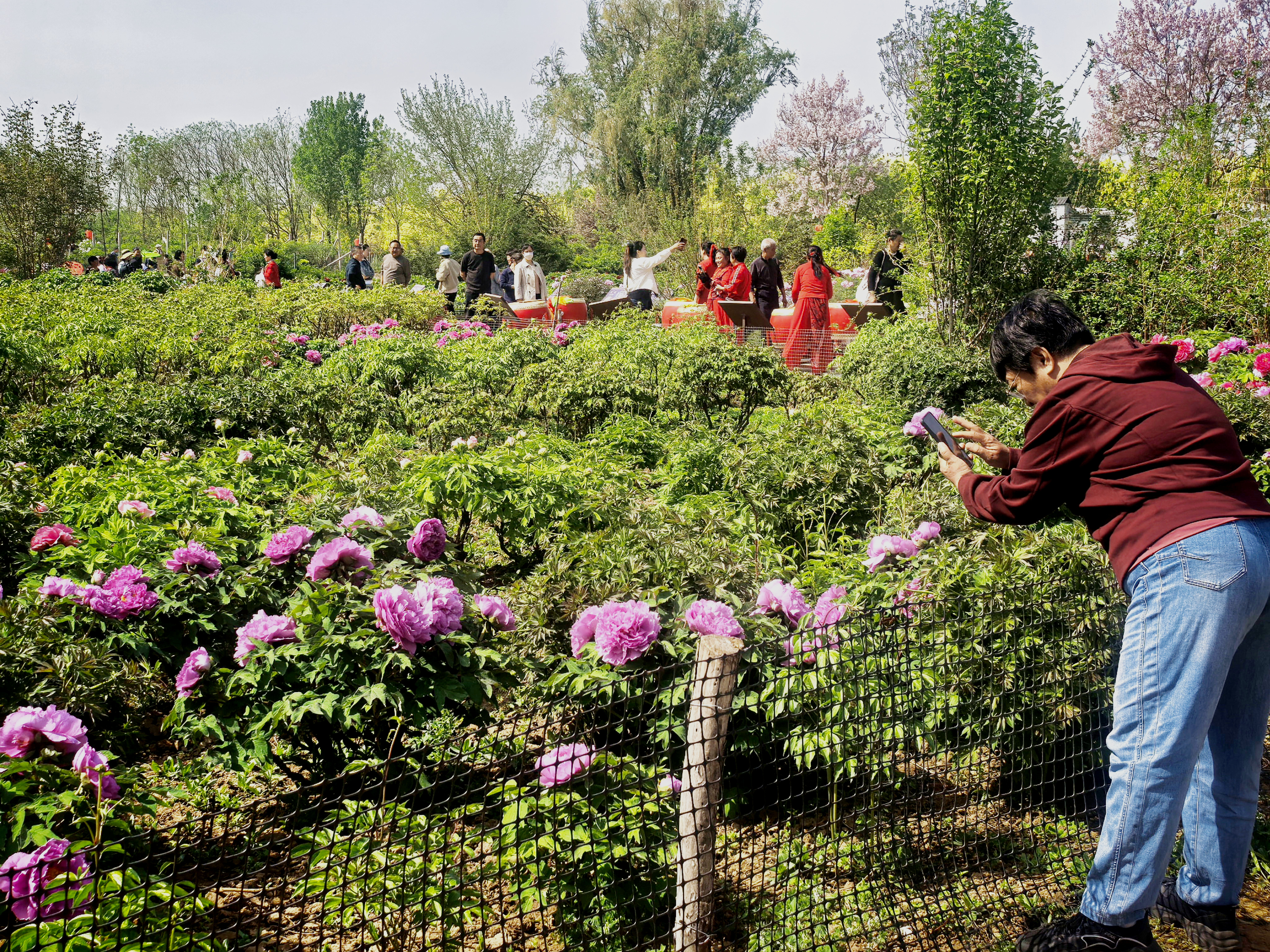 园区依托优质花卉资源,打造集观光游览、科普教育于一体的休闲空间。园内一步一景、花香萦绕,层层叠叠的紫斑牡丹花色斑斓、暗香浮动,吸引周边大批游客慕名而来。繁花掩映间,文艺爱好者自发登台献艺,网络达人进行现场直播、短视频拍摄,线上线下同步传播,让乡村花海美景广为人知。不少家长特意带孩子前来,近距离观察珍稀紫斑牡丹,学习花卉常识、了解牡丹的历史,在亲近自然、放松身心的同时开阔眼界、增长见识。