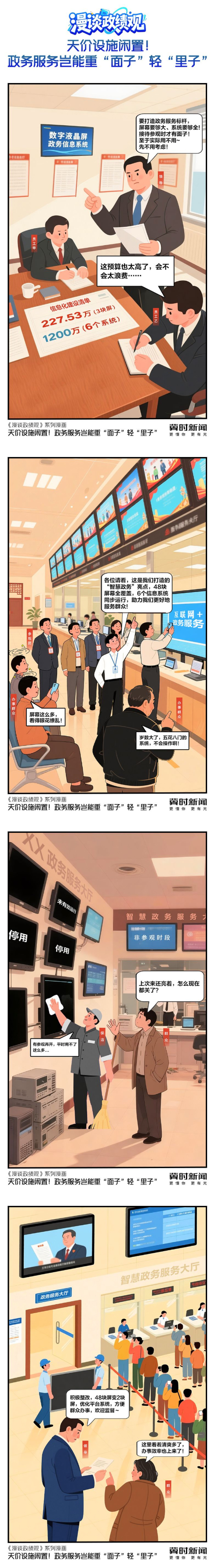 斥巨资打造政务服务“面子工程”,片面追求硬件设施高端大气,暴露出典型的政绩观偏差。这种华而不实、铺张浪费的做法,忽视群众实际办事需求,把精力放在表面功夫上,背离为民服务初心,损害政府公信力。唯有摒弃形式主义,树立以人民为中心的政绩观,把资金用在刀刃上,重视“里子”建设,提升服务效能与群众满意度,让政务服务真正便民利民,才能创造经得起检验的实绩。
