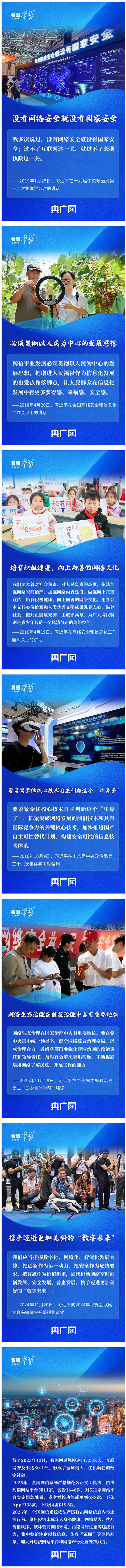 今年是总书记主持召开网络安全和信息化工作座谈会并发表重要讲话十周年。从“让互联网更好造福国家和人民”到“提高网络综合治理能力”,再到过好“互联网这一关”,总书记的一系列重要论述为我国网信事业发展指明前进方向。我们要牢牢把握互联网发展规律,筑牢网络安全坚实屏障,不断释放数字创新强劲动能,切实把互联网这个最大变量变成事业发展的最大增量,让互联网更好地服务国家发展、惠及人民生活,为推进中国式现代化注入强劲动力。
