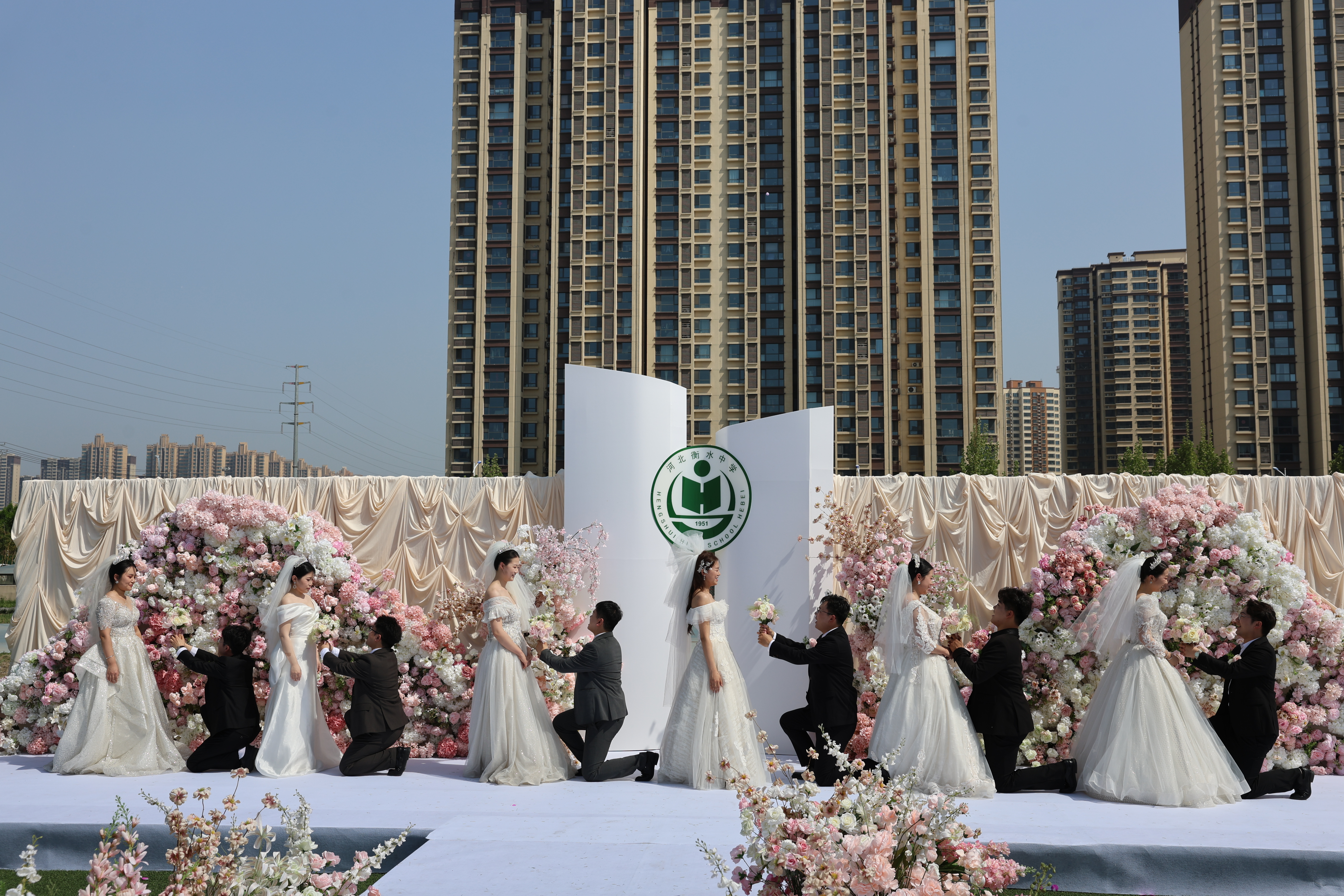 4月18日,衡水中学西操场繁花似锦、喜气洋洋,“情定衡中,幸福一生”第十五届青年教师集体婚礼在这里浪漫举行。6对新人携手并肩,在各级领导、教育同仁、亲友与全校学子的深情祝福中,步入神圣的婚姻殿堂。