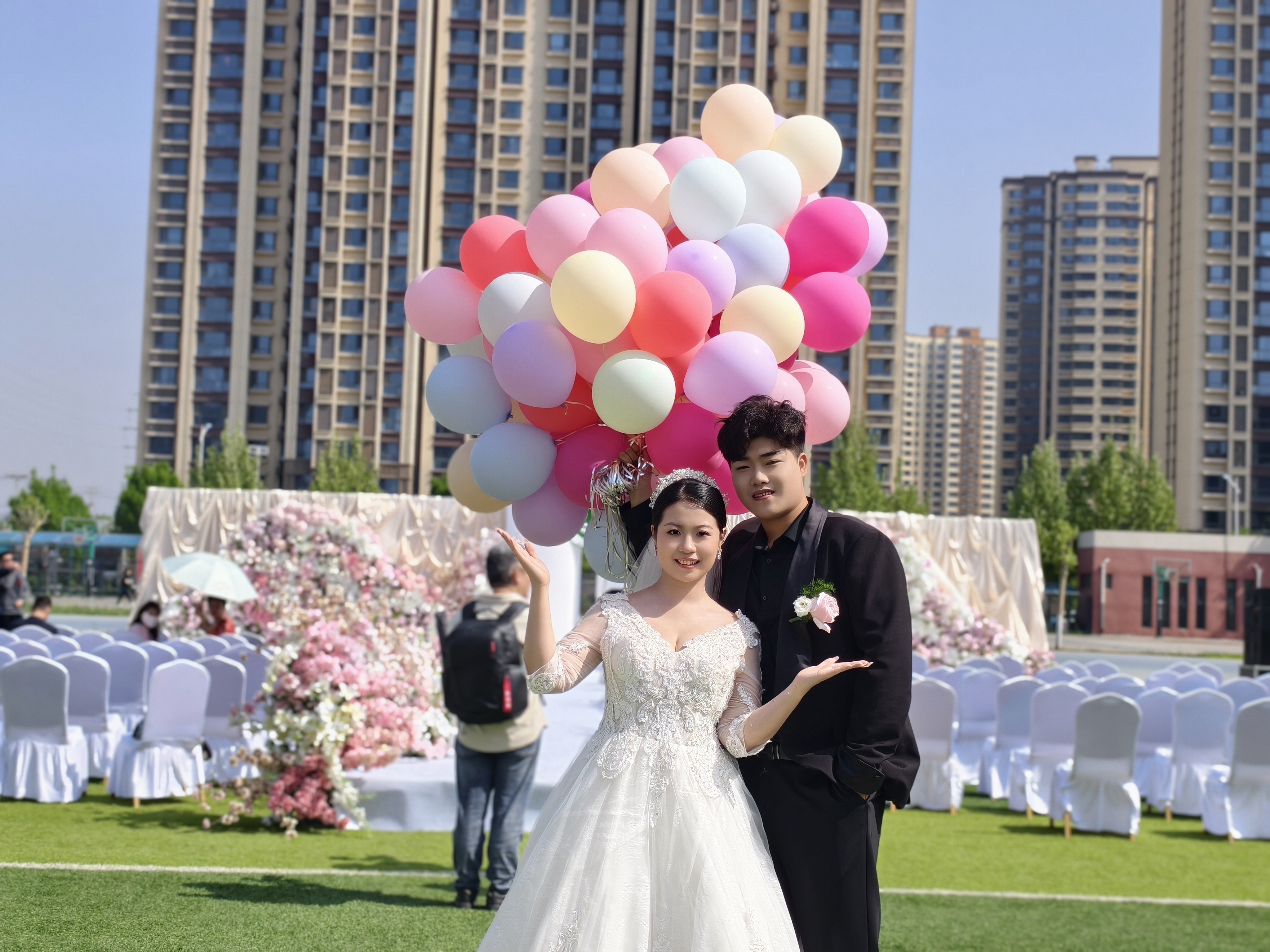 上午10时,婚礼仪式正式开始。伴随着悠扬浪漫的乐曲,新人们挽着彼此的手臂,踏着铺满鲜花的道路款款而来。白纱轻盈,西装笔挺,新人们笑容明媚耀眼。刹那间,缤纷花瓣撒向天空,现场化作一片温馨欢乐的海洋。