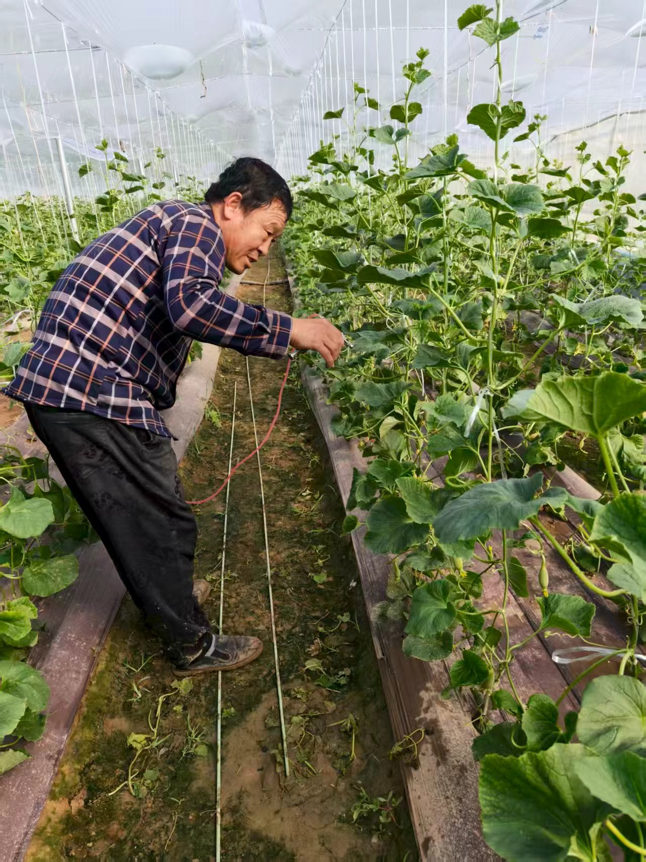 相较于传统水泥柱大棚,钢架棚不仅保温效果更佳、空间更开阔,还能配合吊蔓生长等新技术,有效提升通风透光性、减少病虫害发生,让瓜果品质更优。同时,甜瓜下市后,村民们还会套种一季长豆角,进一步拓宽增收渠道。村集体经济也在大棚承包过程中不断壮大,真正实现了“村集体、瓜农”双赢。