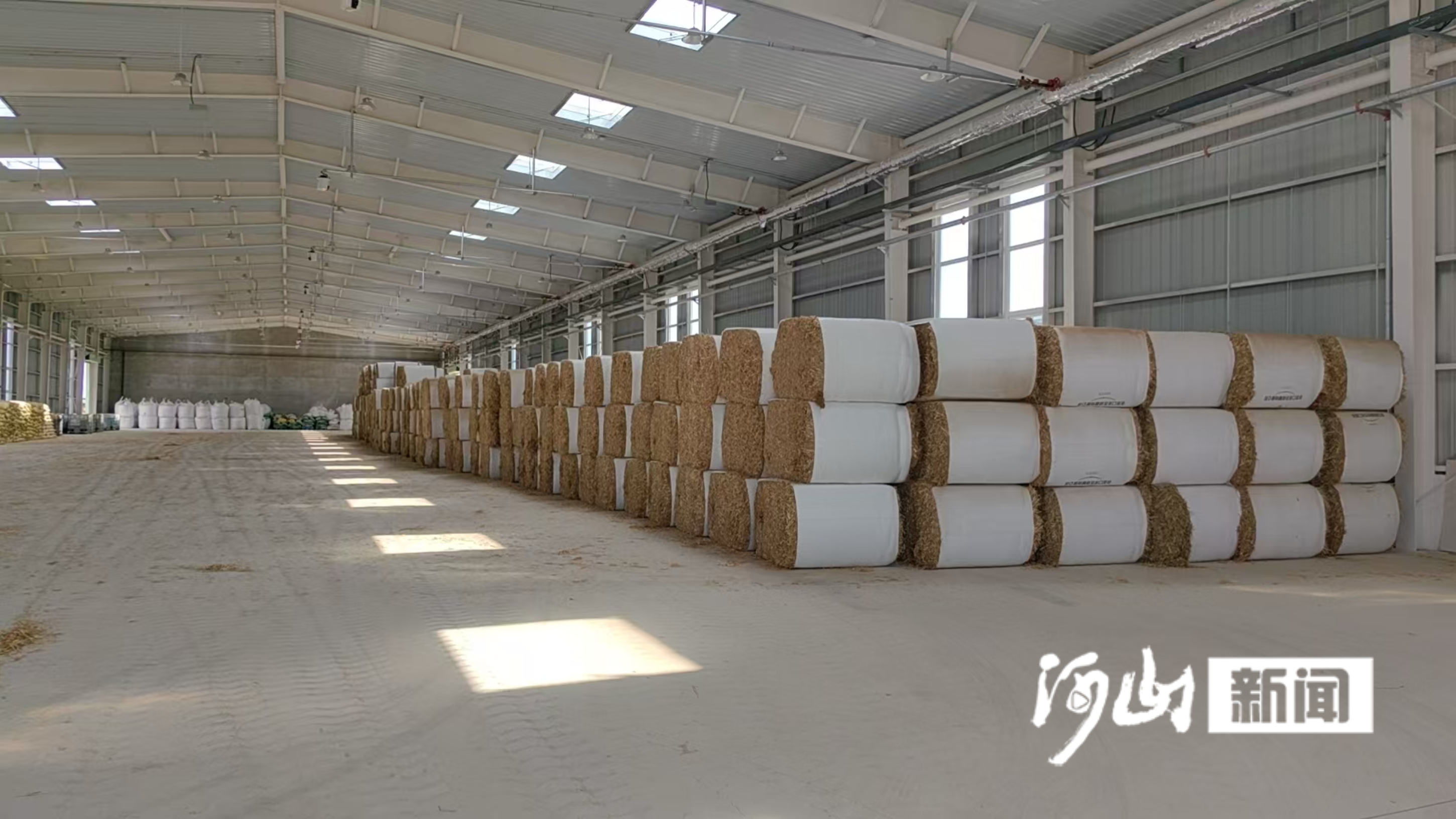 在尚义县大营盘乡饲料加工厂区,揉丝除尘加工生产线正处理着全株青贮玉米。一旁仓储库房内,整齐垒放着一垛垛捆好的饲草。饲草储备中心有限公司相关负责人徐志敏介绍,公司已建成两个饲草储备中心,具备10万吨的干草仓储条件,可对9种饲草进行粗、精加工,形成了集生产、加工、销售、仓储等于一体的完整饲草产业链。