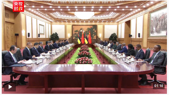4月21日下午,国家主席习近平在北京人民大会堂同来华进行国事访问的莫桑比克总统查波举行会谈。