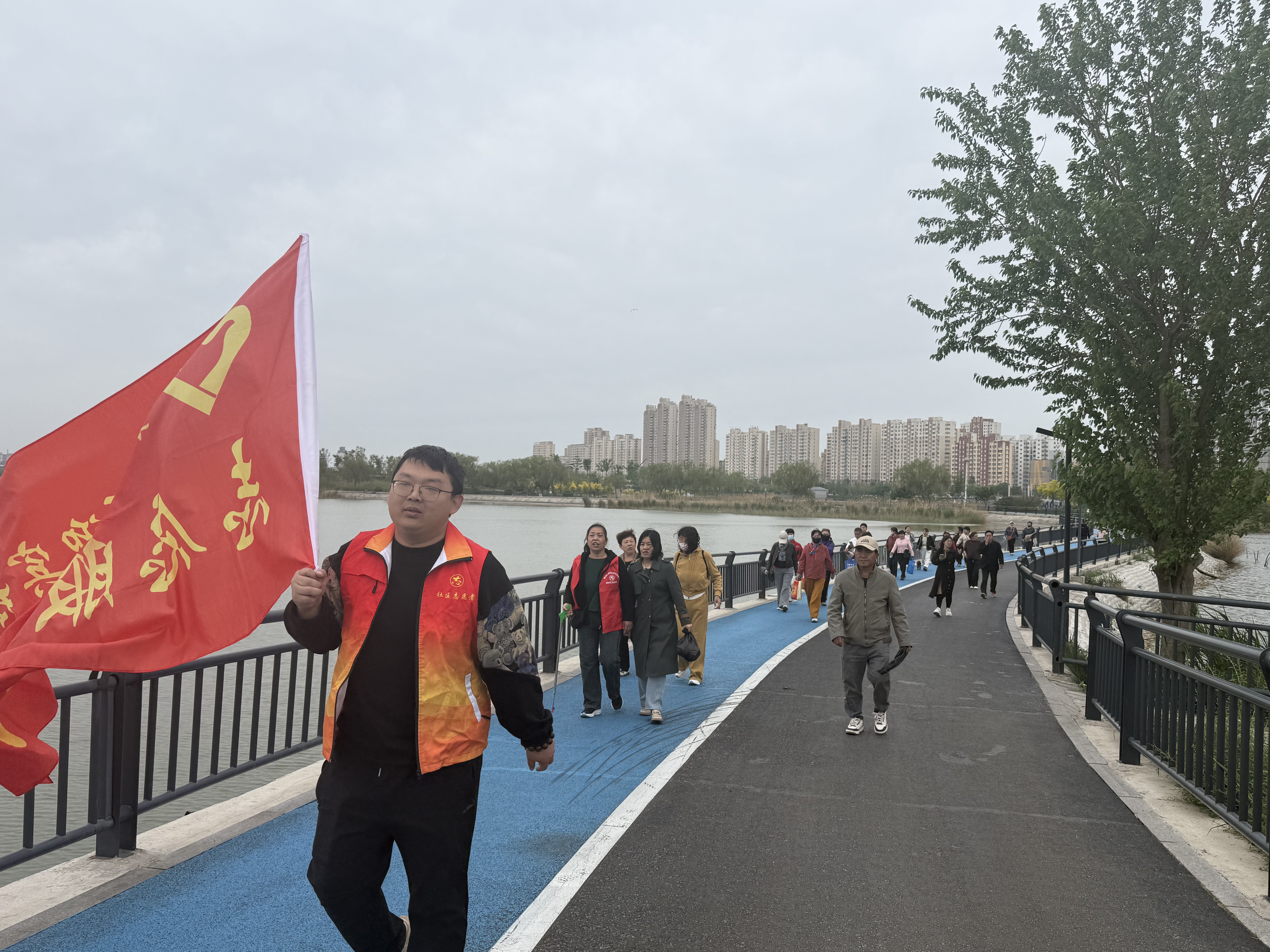 活动当天,老人们精神矍铄、热情高涨,手持垃圾袋沿着社区公园步道、绿化带缓缓前行,仔细搜寻着散落的塑料瓶、纸屑、果皮等杂物,弯腰、捡拾、分类、归袋,一系列动作娴熟而认真,不放过任何一处卫生死角。一次次俯身的身影,是岁月沉淀的担当,是“退休不褪色、余热映初心”的生动诠释。清理完毕后,老人们沿着整洁的步道前行,一边欣赏随风飘拂的柳枝、清澈的湖水、展翅低飞的苍鹭,一边畅谈辖区环境的巨大变化。