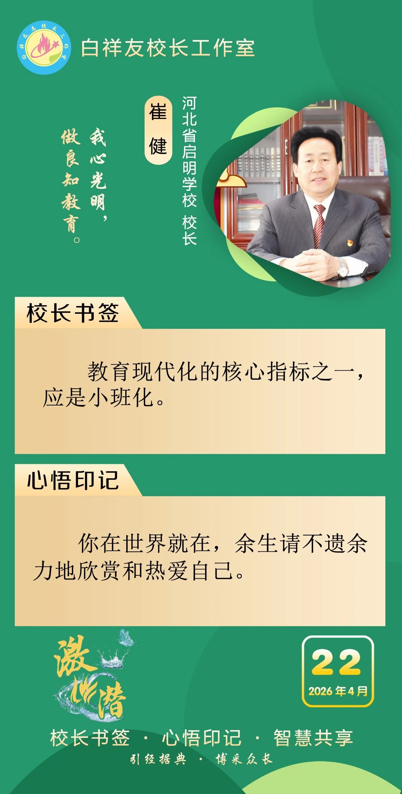 “白祥友校长工作室”成立于2019年4月,是教育部“国培计划”中小学名校长领航工程、河北省首批名校长工作室,目前省内外成员校59所。工作室坚持“资源共享、智慧共融、互助共赢”理念,已成为思想碰撞的交流场,资源共享的品牌站,成果展示的辐射源。 点赞 +1 微博 微信 我要评论 发布 相关推荐 白祥友校长工作室成员新疆实验中学冯永庄校长一行来衡水十三中参观交流 教育大观 03-23 热门 一天 三天 一周 1 赶大集、看大戏!衡水市春季“村晚”走进阜城县霞口镇刘老人村 2 景县举办2026年世界读书日关爱留守困境儿童主题活动 3 春日绽活力 赛场展风采!景县留智庙镇中心校春季运动会顺利启幕 4 武邑武罗社区开展“世界读书日”主题活动 5 衡水市开展“书香溢满、全民阅读”活动让特殊儿童乐享书香 6 衡水市图书馆:全民阅读 书香润湖城 7 市人民路小学:把课间“玩”出健康范儿! 8 阜城县建桥乡:实地拉练 “验成效” 精准发力 “优环境” 9 党建引领强服务 金融赋能促发展——张家口银行衡水饶阳支行党支部开展“党建+业务”系列活动 10 云端启航 直播赋能|衡水桃城机场“一品一播”低空经济盛大直播 1 4起整治形式主义为基层减负典型问题,公开通报! 2 湖畔诵经典 花海品书香——衡水市全民阅读热潮涌动 3 七百株百年牡丹在阜城县霞口镇安新家 4 衡水市全民阅读活动周暨五一惠民书市系列活动启动 5 快来报名,全国青少年国防素养大赛(河北综合赛区)选拔赛来了 6 让“最柔软群体”享受“最优质照护”—— 衡水市故城县普惠托育服务实现从“有”向“优” 7 武邑县多部门联合开展“全民阅读活动周”主题活动 8 共青团桃城区委开展世界读书日主题实践活动 9 【乡村行 看振兴】倪庄村的三条“振兴路” 10 四金、四银、七铜 衡水小将闪耀省运动会冬季项目 创历史最佳战绩 1 看图学习|筑牢网络安全和数据安全防线 总书记关心的“网事” 2 以爱为灯 照亮乡村阅读路 衡水乡村教师马久爱点亮孩子精神星空 3 衡水市冀州区开展“阅见书香之美 共筑阅读之城”春季书香节主题活动 4 衡水市药品不良反应监测中心获全国通报表扬 5 花田里的“金色突围”——探寻安平杨屯油菜花全产业链密钥 6 衡水文旅“春意浓”:多元产品激活春日市场 7 百余件(套)冀派内画精品走进甘肃瓜州 8 衡水德州市场监管联动 优化外资营商环境 9 河北故城:启动“护苗·绿书签”行动 书香校园里播撒“绿色”种子 10 冀州:科技赋能田管 护航冬小麦返青拔节 广告 广告 广告 24小时 1 饶阳:葡萄抢“鲜”上市 2 “圈”动石家庄·奋进“十五五”丨同城共兴:拓展产业协同的“三度”空间 3 承德赏花经济激活春日消费新动能 4 陪你看见 | “我恋禾谷”王玉珍:人生没有太晚的开始 5 骑行正定话初心丨宝藏古城的出圈密码 6 工行安平支行开展“大手牵小手”金融知识下乡活动 7 白祥友名校长工作室 | 激潜教育探索随笔(第809期) 8 政银担联动助农兴产——张家口银行阜城支行打通金融服务乡村振兴“最后一公里” 9 衡水市开展第57个“世界地球日”垃圾分类主题宣传活动 10 油菜花开美如画 赏花踏青带热衡水乡村游