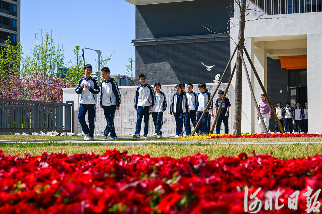 4月10日,北京四中雄安校区学生在校园漫步。 河北日报记者 李东宇摄