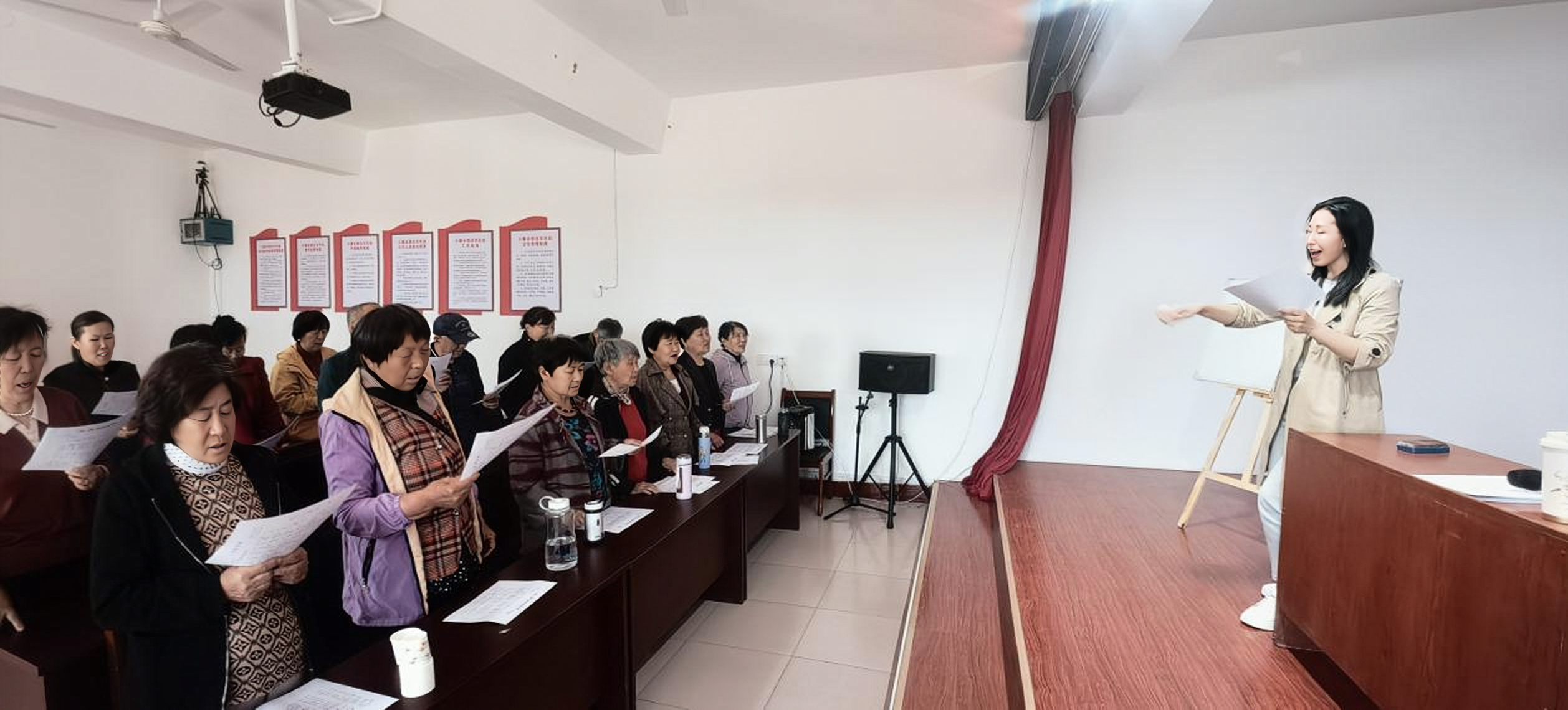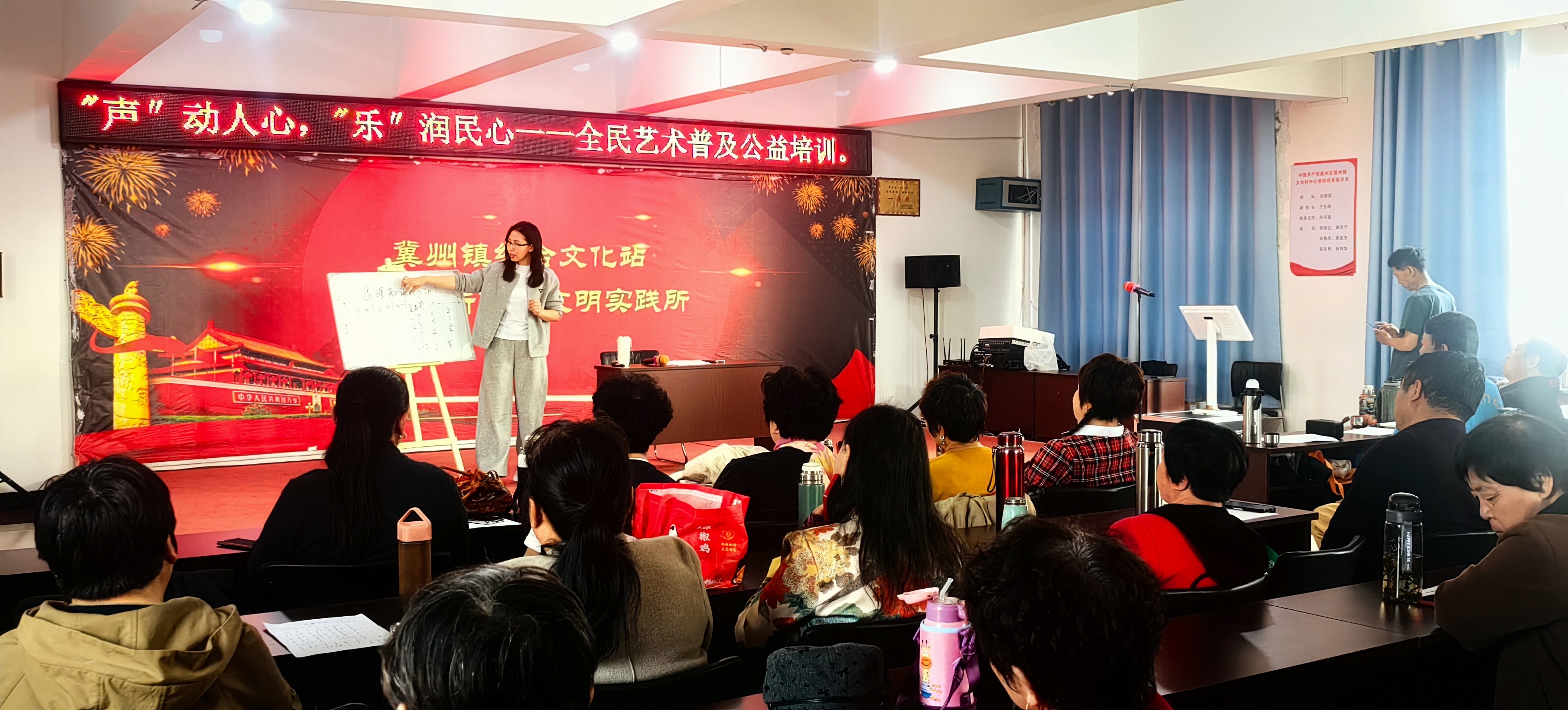 “声”动人心,“乐”润民心。全民艺术普及公益培训同步火热开展,聚焦基层广大歌唱爱好者,邀请专业声乐老师、文化辅导员走进乡镇、社区,开设声乐基础、合唱技巧、节奏训练、情感表达等系列课程,打造“家门口的艺术课堂”。培训过程中,老师摒弃复杂理论,用通俗易懂的语言讲解发声方法、呼吸技巧、节奏把控等核心内容,通过“一对一指导”“集体示范练习”“曲目精讲”等形式,耐心纠正演唱误区,带领群众逐句练习。从基础乐理的入门讲解,到经典歌曲的打磨演唱,从合唱配合的默契培养,到情感表达的精准传递,学员们认真聆听、积极参与,在悠扬的旋律中感受音乐魅力,在互动交流中提升艺术素养。冀州区图书馆、冀州区文化馆也充分发挥文化阵地作用,持续组织开展阅读推广活动和各类公益文化艺术培训活动。