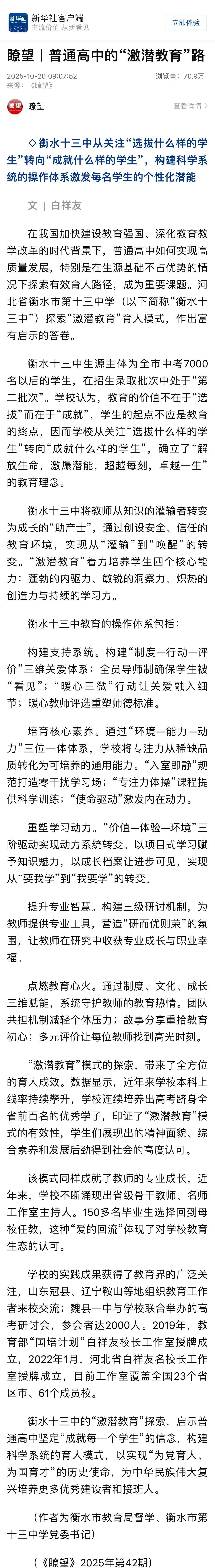 “真传播”——800多期“激潜教育探索随笔”,新华社《瞭望》周刊深度报道,让“激潜”二字走出校园,走向全国。