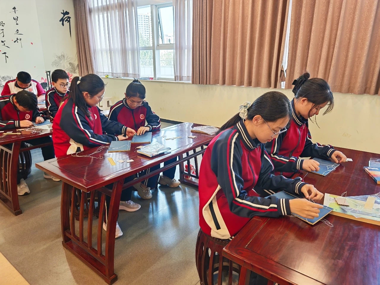 活动现场,46名青少年在工作人员引导下翻阅地域非遗技艺与民俗文化书籍,在图文并茂的内容中初步了解非遗内涵,感受传统文化底蕴。市图书馆讲师结合馆藏古籍与历史资料,生动讲解书籍发展历程及线装书装帧技艺,重点解析线装书作为中国古籍装帧艺术巅峰的工艺特色与文化价值,激发青少年对传统装帧技艺的探索兴趣。在线装书缝制体验环节,青少年们在工作人员的指导下化身“小小匠人”,认真完成折页、打孔、穿线、装订等工序。从初次尝试的生疏到最终的专注,大家反复打磨细节,顺利完成亲手制作的线装书,收获满满成就感,并积极分享制作心得。