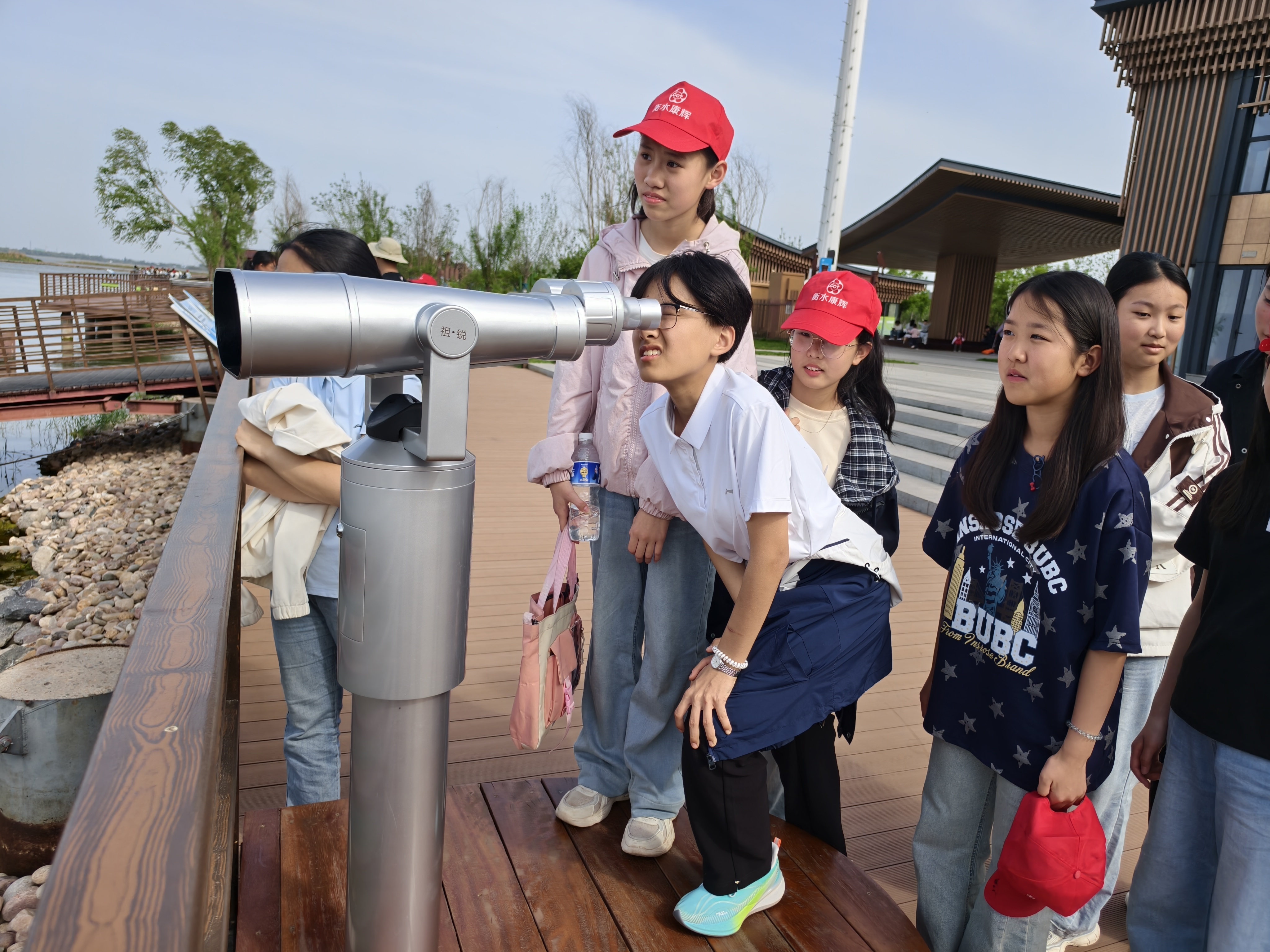 第二站是衡水湖樱花岛。在樱花岛的科普活动中,同学们化身“白鹭情报局小特工”,聆听鸟类科普讲解,探究野生白鹭的迁徙成因、衡水湖作为迁徙驿站的重要价值,以及鸟类迁徙面临的生存挑战,深刻理解了生物与环境的紧密联系。