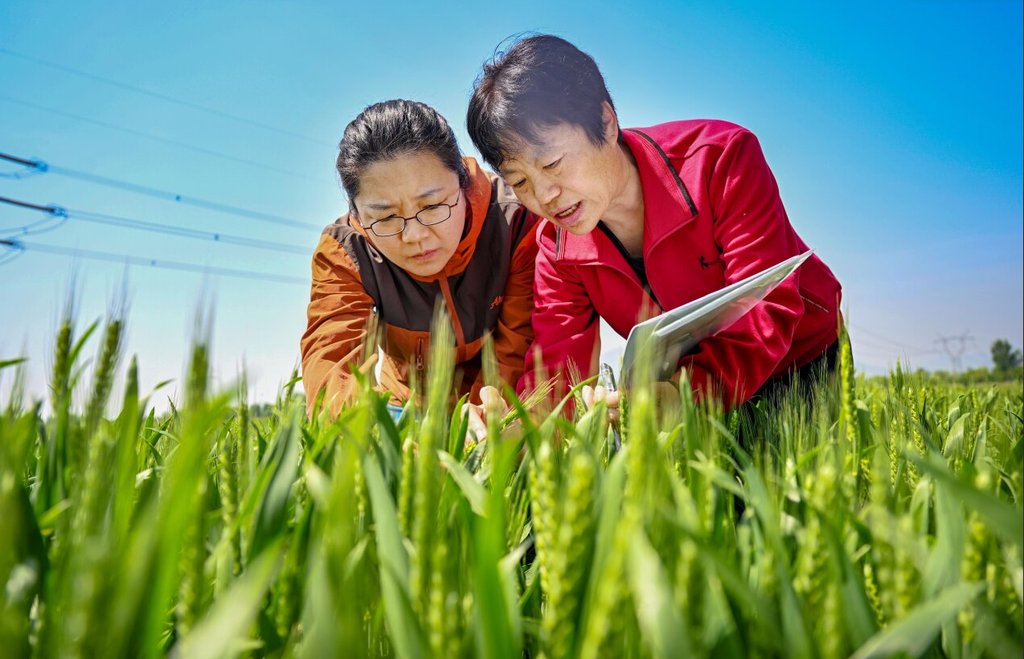 4月25日,董志平(右)在石家庄市鹿泉区一处试验田采集数据。河北日报记者 张昊摄