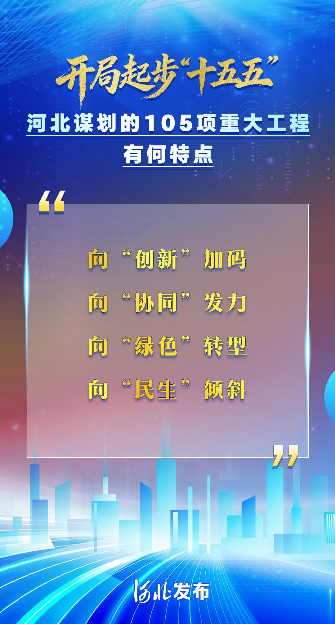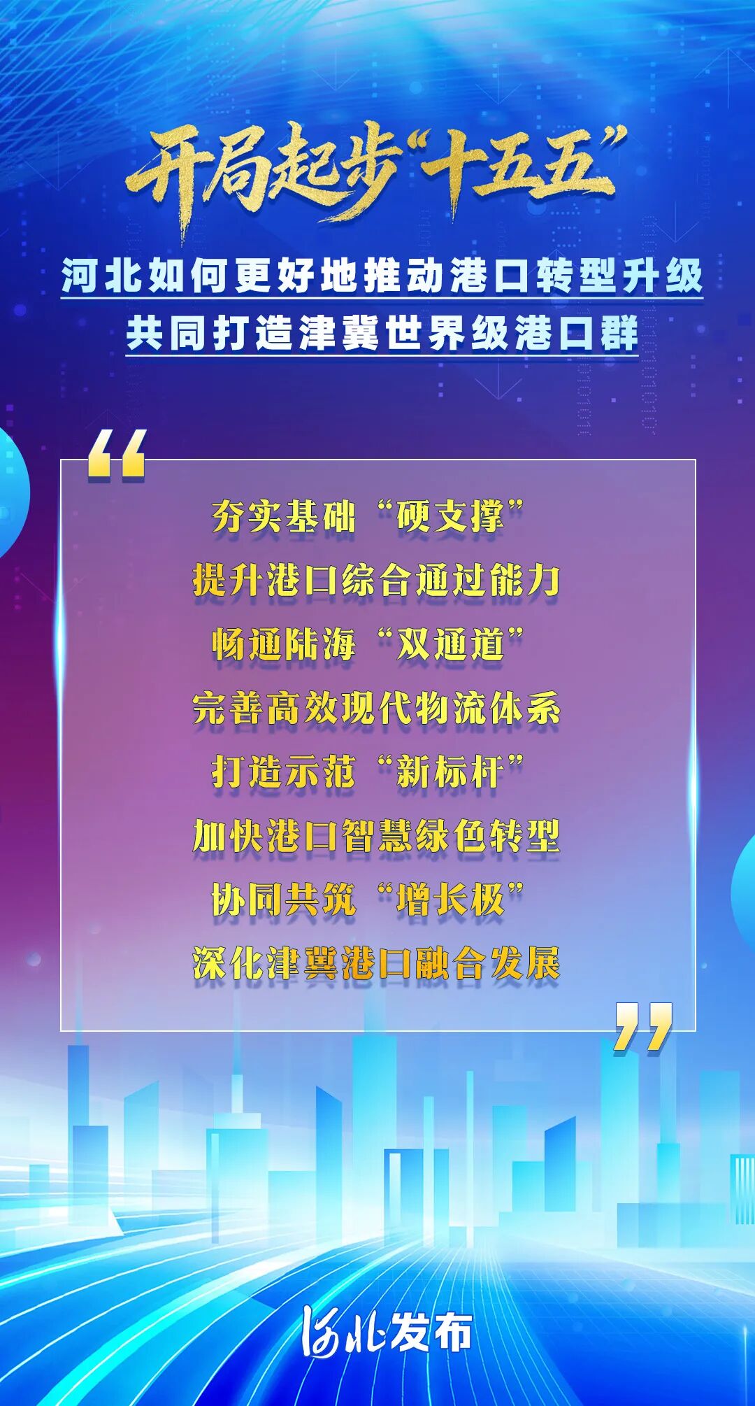 4月27日河北省人民政府新闻办公室举行开局起步“十五五”河北专场新闻发布会会上透露了哪些重要信息9张图带你快速了解↓↓↓编辑:贾扬阳 来源:河北发布 原标题:9张图了解河北“十五五” 点赞 +1 微博 微信 我要评论 发布 相关推荐 衡水五院精准诊疗为帕金森患者重启人生 衡水速览 58分钟前 锚定目标谋发展 聚焦实干开新局——河北省“十五五”规划纲要解读 关注 59分钟前 重磅!河北“十五五”怎么干,重点都在这了 关注 1小时前 海报解读丨未来五年 河北这么干 关注 1小时前 开局起步“十五五”:开局之年河北怎么干? 关注 1小时前 协同跃升 创新提速 河北“十五五”聚焦“五个关键点” 关注 1小时前 河北省举行“开局起步‘十五五’河北专场新闻发布会” 关注 1小时前 奔赴新的赶考 续写河北高质量发展精彩答卷 开局起步“十五五”河北专场新闻发布会今天召开 关注 2小时前 热门 一天 三天 一周 1 人民之心|继续回答好延安“窑洞之问” 2 4月29日盛大开业!衡水海信品质之家三重补贴+豪礼嗨购不停 3 衡水市以“绿”为笔绘就民生新图景 4 每月上门 闭环解忧 多方协同 衡水市冀州区古城社区念好基层治理“暖”字诀 5 衡水市开展“全国疟疾日”主题宣传活动 6 霓裳舞湖韵 非遗绽风情 衡水市“雨润春归·夏启风华”系列主题文艺展演首场服饰秀华美绽放 7 衡水市开展蜱虫监测工作为市民踏青露营保驾护航 8 衡水市“河北福嫂”北京服务中心揭牌启用 9 一颗小芽苗正在谱写乡村振兴曲 10 衡水市文化广电和旅游局发布“五一”文明出游提示 1 “喵星人”坐上高铁!衡水北站迎来首位“萌宠旅客” 2 自在衡水·说走就走 “五一”期间衡水将推出百余场文旅活动 3 景区免费、住宿折扣、餐饮优惠 “五一”期间 衡水文旅将推出“全城宠客”行动 4 桃城区中湖大道(北堤至南堤段)正式通车 5 《百家讲坛》知名主讲人纪连海走进衡水新华书店 解读三国公孙瓒传奇人生 6 人民之心|继续回答好延安“窑洞之问” 7 十八而志 技能报国——武邑职教中心·劳动技工学校2024级学生成人礼圆满举行 8 4月29日盛大开业!衡水海信品质之家三重补贴+豪礼嗨购不停 9 衡水华润燃气:携“新”亮相房博会 用安全智能产品引领厨房新生活 10 衡水市以“绿”为笔绘就民生新图景 1 快来报名,全国青少年国防素养大赛(河北综合赛区)选拔赛来了 2 【四中全会精神在基层】“种苗工厂”里的现代化答卷 ——探访冀州区“育繁推一体化”种苗数智工厂 3 四金、四银、七铜 衡水小将闪耀省运动会冬季项目 创历史最佳战绩 4 守好民生“转运线” 做好群众“贴心人” —衡水优护送打造规范专业非急救转运标杆 5 书香润乡村 阅读促振兴 衡水市武邑县圈头乡启动“农家书屋”全民阅读活动周 6 河北衡水:中国航天 衡水懂你——衡水市航天系列展览启幕 7 景县举办2026年世界读书日关爱留守困境儿童主题活动 8 “奔跑吧·少年”2026年衡水市青少年田径比赛暨河北省青少年田径锦标赛达标赛开赛 9 童心妙笔扮家园 衡水桃城区路北街道华庭社区开展壁画共创活动 10 油菜花开美如画 赏花踏青带热衡水乡村游 广告 广告 广告 24小时 1 衡水市桃城区中华大街街道举办专场演出 2 巾帼暖“新” 与爱同行 衡水市景县妇联走访慰问新就业群体女性 3 衡水市开展全覆盖清查整治 严查多类违法行为 4 90.75亿斤!衡水去年粮食总产创历史新高 5 衡水五院精准诊疗为帕金森患者重启人生 6 蚀迹成文 裂痕生光——记武邑虫蚀技艺代表性传承人陈永顺 7 全天候演出+趣味互动 武强周窝音乐小镇打造沉浸式音乐假期 8 衡水胜康中医医院:专注股骨头坏死保守保髋 以中医匠心守护行走希望 9 衡水胜康中医医院交出“鲜活答卷”:30多名股骨头坏死康复者集体登顶苍岩山 10 安平县:文化超市送大戏 传统戏曲润民生