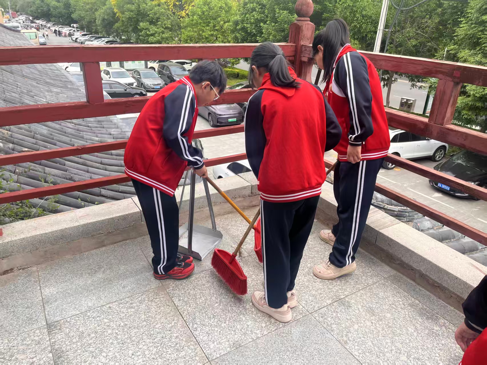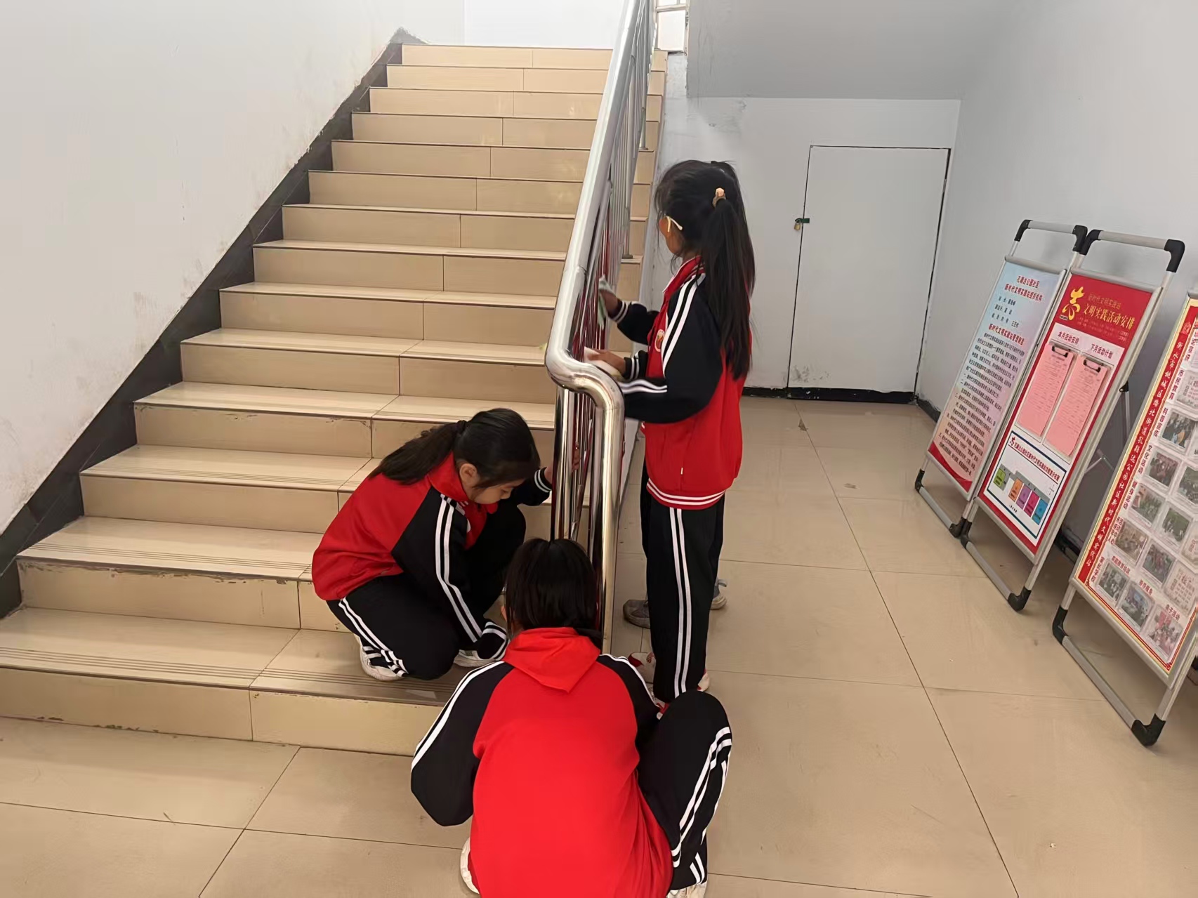 参观结束后,石立泉带领少先队员开展劳动实践活动,大家分工协作,认真擦拭楼梯、清扫地面、清洁展牌,以实际行动践行劳动精神,展现出积极向上的精神风貌。