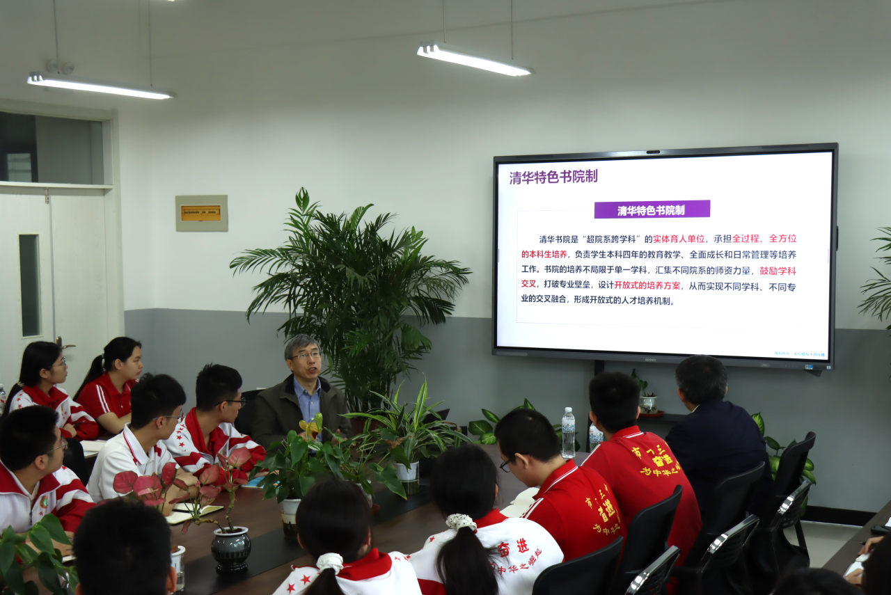活动中,韩赞东教授向同学们介绍了清华大学的办学特色、专业设置、人才培养模式等,勉励同学们树立远大理想,夯实学科基础,培养独立思考与持续学习的能力,将个人理想融入时代发展。