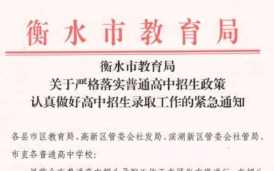 衡水:严格落实普通高中招生政策 认真做好高中招生录取工作