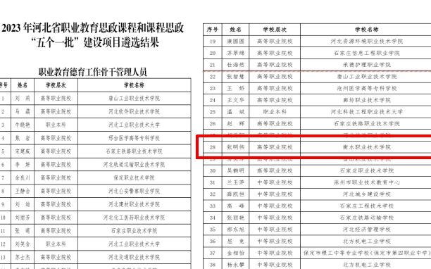 衡水职业技术学院两项成果入选河北省职业教育思政课程和课程思政“五个一批”建设项目
