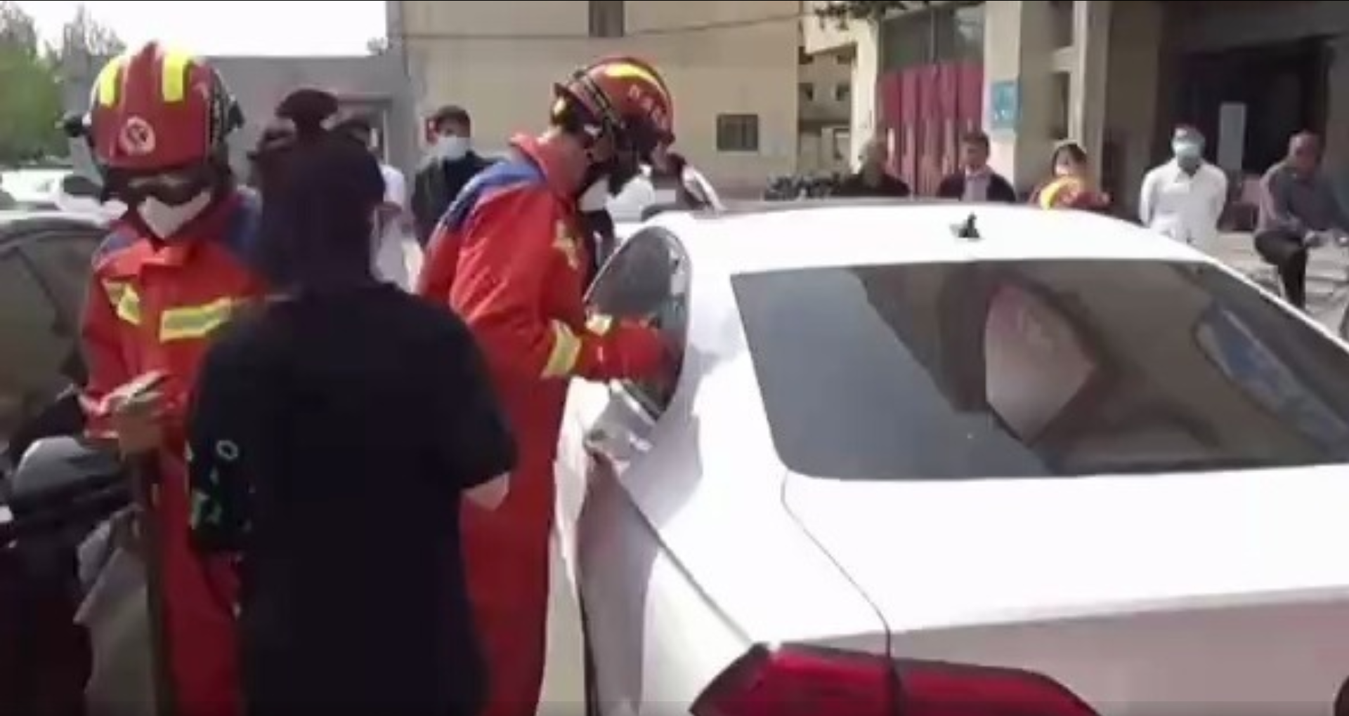 衡水饶阳:婴儿被困车内 消防紧急救援