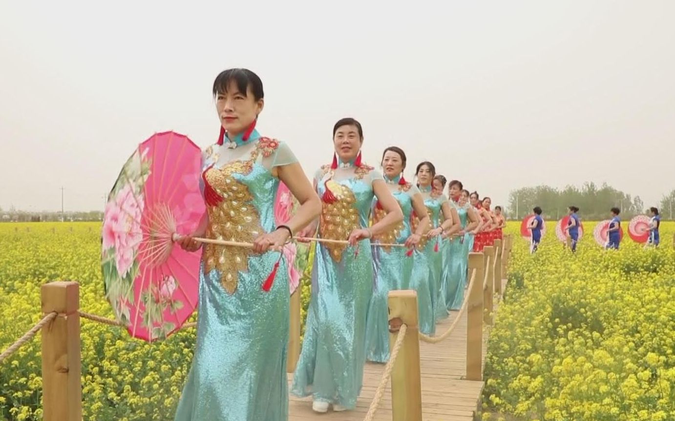 衡水饶阳:油菜花海金灿灿 旗袍走秀韵翩翩